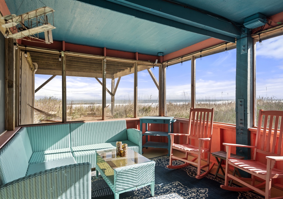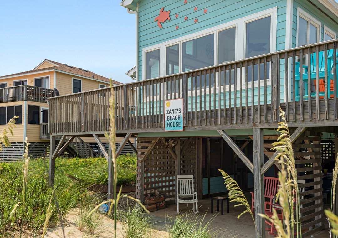You will be thrilled with the amazing view of the ocean at Zane's Beach House. This cute and comfortable oceanfront home with its coastal charm is where your family and furry friends will love the quick walk to the beautiful ocean where you can relax in the sun, surf, and search for shells and sea glass. The spacious decks are perfect for gathering to watch the stars and enjoy the sound of the waves and smells of the salty air. Your vacation will be complete with the experience of waking up every morning and falling asleep every night to the sound of crashing waves and a view you'll never forget! You won't want to be inside when you see the outdoor living space under the house with a hot tub and the screened porch for dining and relaxing.