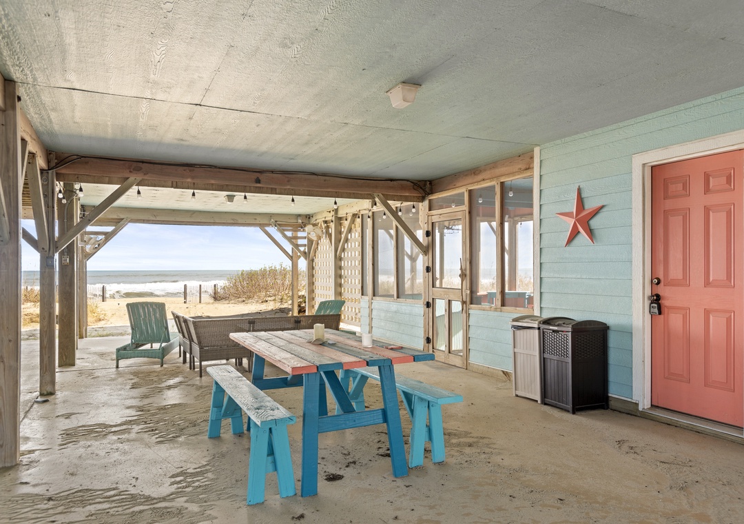 I was disappointed that the photos of the screened porch online were not at all reality. It looked like a lovely useable adult space but it was a messy area set up to lock toddlers in. Large sand box with play house etc. All the deck furniture under the home is broken and unsightly. Previous renters and cleaning crew left both rolling trash barrels full so had to haul their trash before we could use. The home itself is lovely and is set up perfectly.- Reviewed On: 3/25/2024