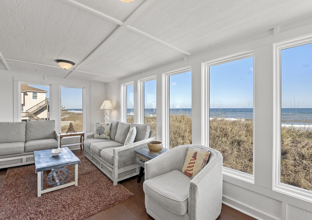 But the real star? The breathtaking oceanfront views. Wake up to the sound of waves, sip your morning coffee with the sunrise, and unwind each evening with the sea breeze on your skin. Whether you're lounging on the deck or strolling along the shore, Dolphins and Dunes offers a front-row seat to the Atlantic.