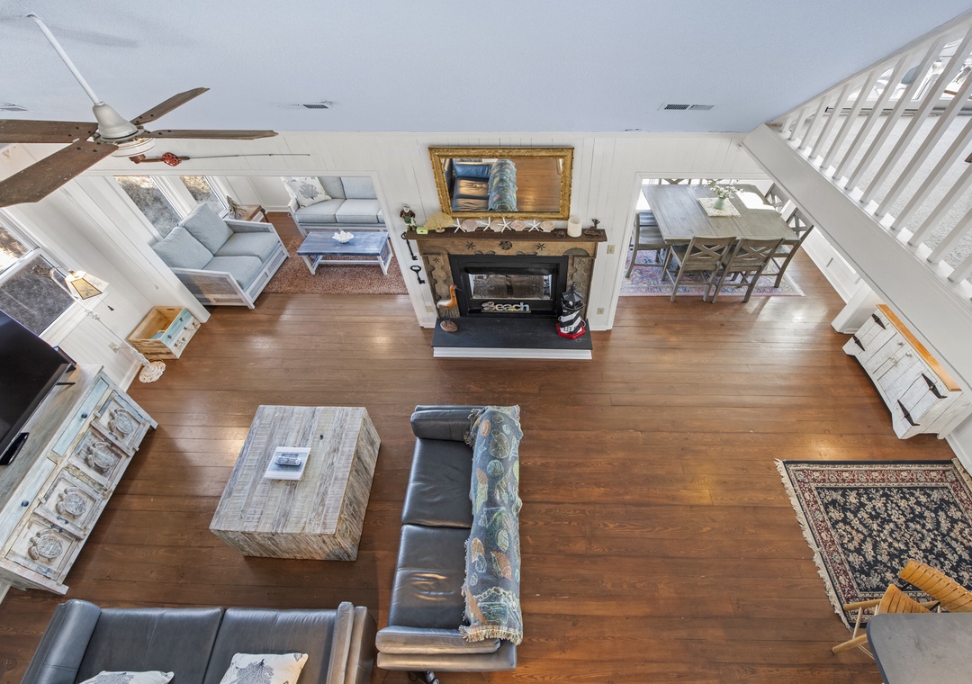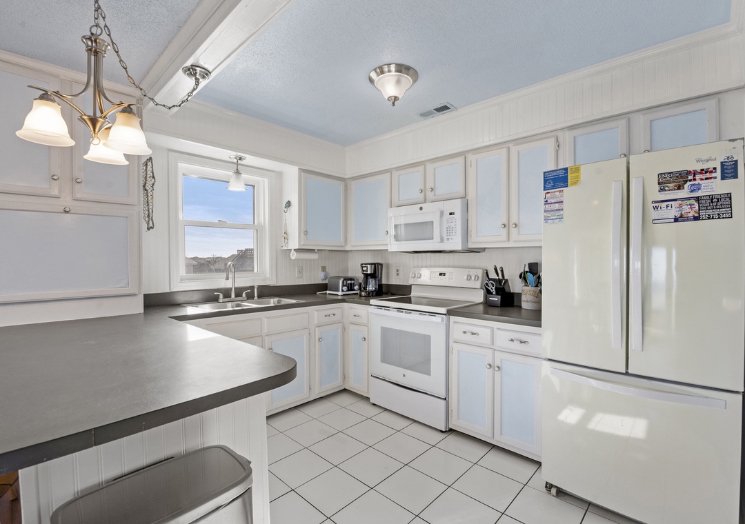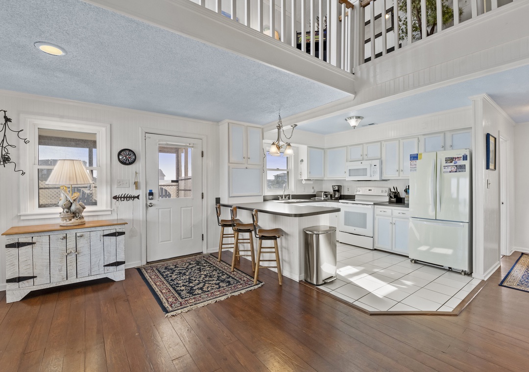 Step inside and feel right at home. The ground level features a convenient laundry room, perfect for sandy beach days. Head up to the middle level where you’ll find two spacious king bedrooms, a full hall bath, a fully equipped kitchen ready for your culinary creations, a dining room that seats eight, and a cozy countertop bar with seating for two.