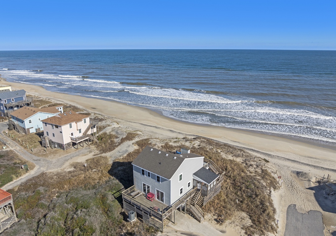 Welcome to Dolphins and Dunes – your Oceanfront Oasis! Escape to the serenity of the sea at Dolphins and Dunes, a stunning oceanfront property just half a mile north of the National Seashore. This charming 4-bedroom, 2-bathroom home offers the perfect blend of comfort, convenience, and coastal beauty—ideal for families, friends, or anyone seeking a relaxing beach getaway.