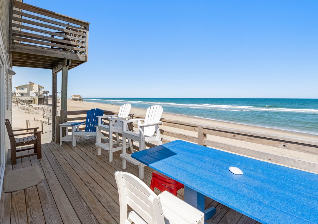 For the ultimate Outer Banks retreat, escape the stresses of everyday life and renew your spark at Torchsong. Perched right on the dune line just steps from the ocean, getting to the beach couldn't be easier. Torchsong is situated farther east than any of the surrounding homes, providing unobstructed views of the Atlantic. This classic cottage has been updated with new flooring throughout and a wrap-around sun deck where you can enjoy the sound of the waves, salty breezes and panoramic ocean views. Best of all, Torchsong welcomes dogs so your four-legged family members can experience beachfront living by your side.