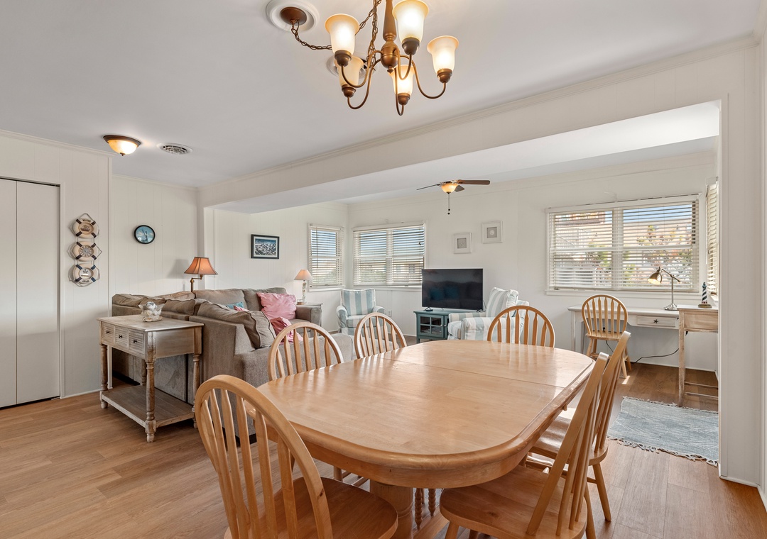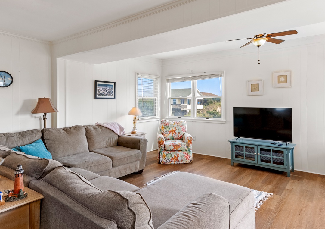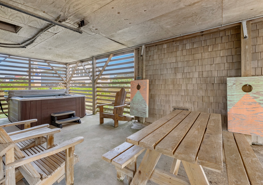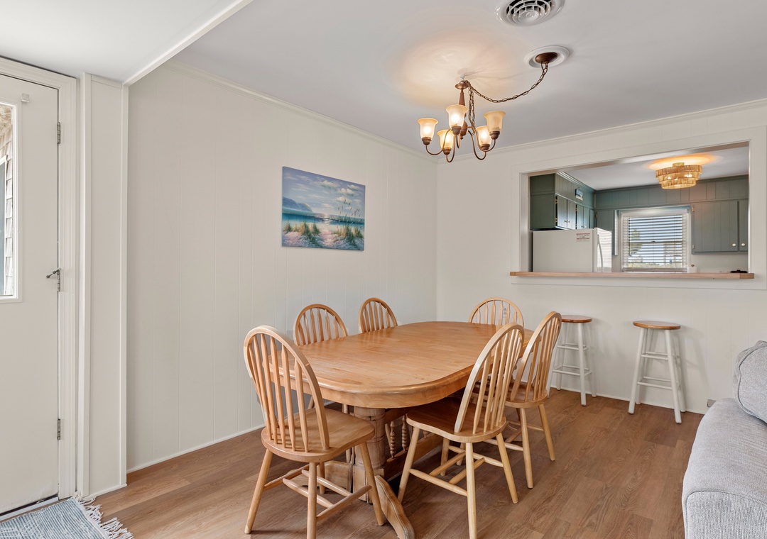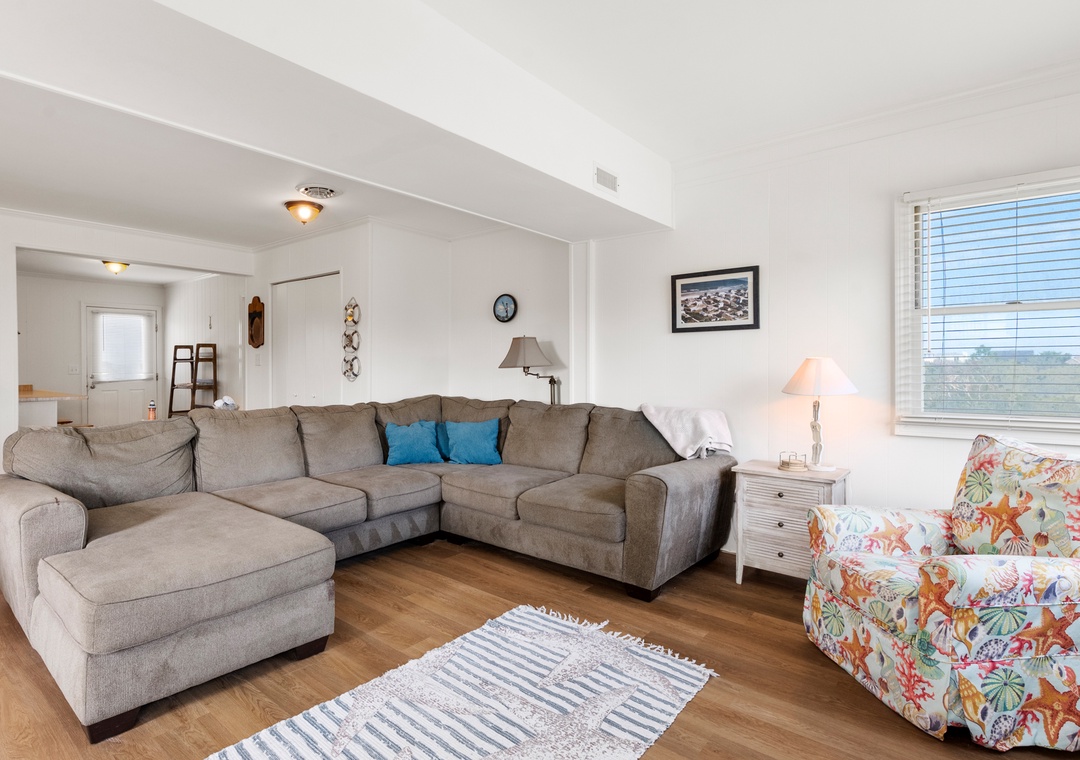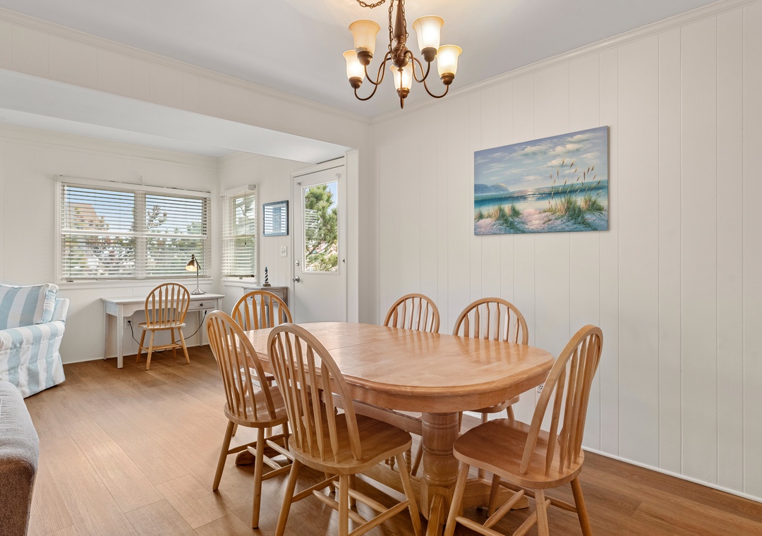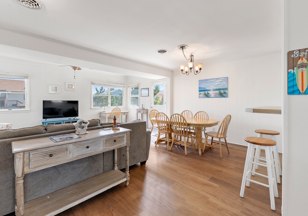 Make your escape to Seafoam Sally, a semi-oceanfront home located just steps away from the pristine and uncrowded beaches of South Nags Head. New furniture, flooring and fresh paint throughout create an updated look and feel while maintaining the home's authentic coastal charm. Kick back and relax in the open-concept great room with comfortable seating and abundant natural light. It includes a desk where guests can stay caught up with work or school remotely with a glimpse of the ocean. The living area leads out to a sun deck where you can soak up the rays while enjoying the salty ocean breeze. Back inside, prepare meals in the fully stocked kitchen with bar seating. The floorplan features a split bedroom layout, with two bedrooms and a full bath located on either side of the common areas. Two queen bedrooms share a full hall bath on the north end of the home, while a third queen bedroom and twin room on the south end share a second full bath. Downstairs, the ground level is set up for outdoor gathering with family and friends. After a day at the beach, rinse off in the outdoor shower before firing up the grill or unwinding with a soak in the bubbly hot tub. Dogs are welcome at Seafoam Sally, and pet parents will appreciate the grassy yard, quiet street and South Nags Head's multi-use path.