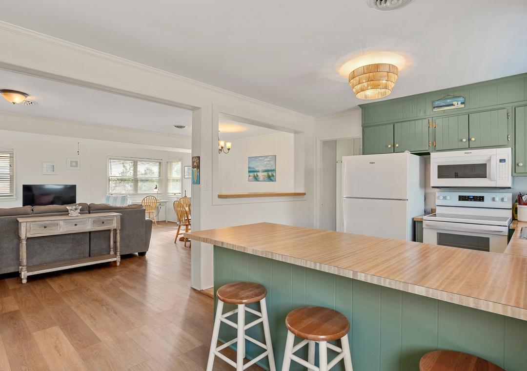 Situated at Milepost 20.5, Seafoam Sally offers the tranquility of the all-residential and family-friendly South Nags Head area. A short drive or bike ride north will take you to the Outer Banks Fishing Pier and Fish Head's Bar and Grill. There, you can savor delicious food and refreshing drinks while enjoying live music and a stunning ocean view. Seafoam Sally is less than two miles from Coquina Beach and the 4x4 beaches, which are cherished local spots for fishing and surfing. If you're up for more adventure, you can explore the iconic Bodie Island Lighthouse or embark on a ferry ride to Ocracoke for an unforgettable day trip.