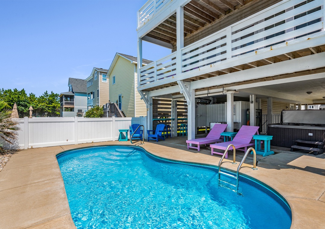 Sand Castle Cottage is a newly renovated, semi-oceanfront vacation home in South Nags Head. In addition to having your very own private pool and hot tub, the ground level is set up for around-the-clock outdoor entertainment and relaxation. Whether you're firing up the grill, lounging by the pool or going one-on-one in foosball or ping pong, everyone can do their thing while still being together. Best of all, getting to the beach will be hassle-free using the Jacob Street beach access. It's just a three-minute walk from the house but also provides parking, as well as a ramp and wooden walkway for easily crossing the dunes.
