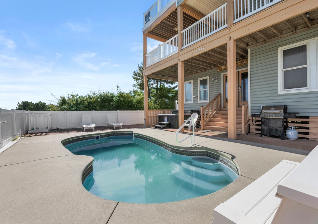 Home exterior was awesome, pool was pristine and there were toys & floats for the kids. Plenty of chairs and a great hot tub & outdoor shower. Gas grill major bonus. The bedrooms are a little crowded but met requirements. Small bathrooms but clean. Main/largest bedroom is on middle level across from kid room (which had a trundle--thanks!) Bedroom on 3rd floor was the smallest but had a king size bed. Kitchen was well equipped for a large group. Abundant soft blankets & extra pillows in living space. Fun game space, extra fridge also a huge bonus for large groups and access during pool-time. Outdoor covered deck space & chairs on middle level was terrific. Traffic outside is noisy and persistent. Had to cross busy street to walk to beach. Overall, we had everything and more to enjoy our week as a group of 9 plus the dog. Thanks for sharing your home, we truly enjoyed all of it!- Reviewed On: 7/12/2025