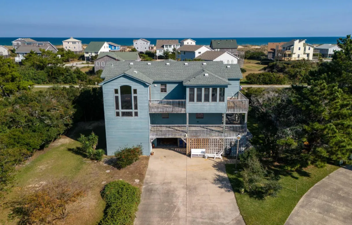 Welcome to Forever Salty, a beautiful 5-bedroom, 4.5-bathroom getaway in South Nags Head! The ground level invites you to unwind in an enclosed entertainment space designed for fun and relaxation. Step outside to enjoy the coastal breeze while lounging on outdoor furniture, sipping drinks at the tiki bar, or catching your favorite show on the outdoor TV. For those warm summer days, the fenced backyard is a true oasis featuring a sparkling pool, a soothing hot tub, and an outdoor shower, perfect for rinsing off after a sun-soaked day at the beach.