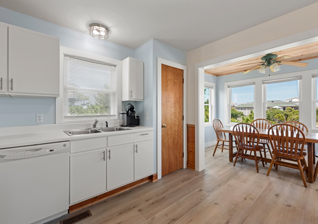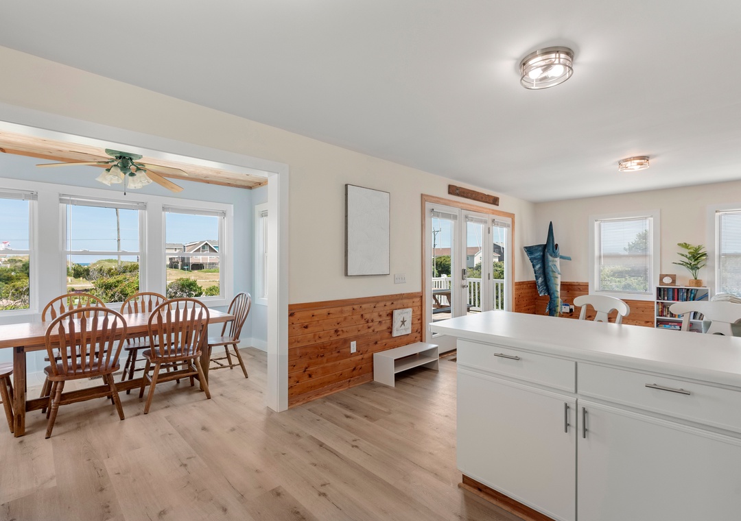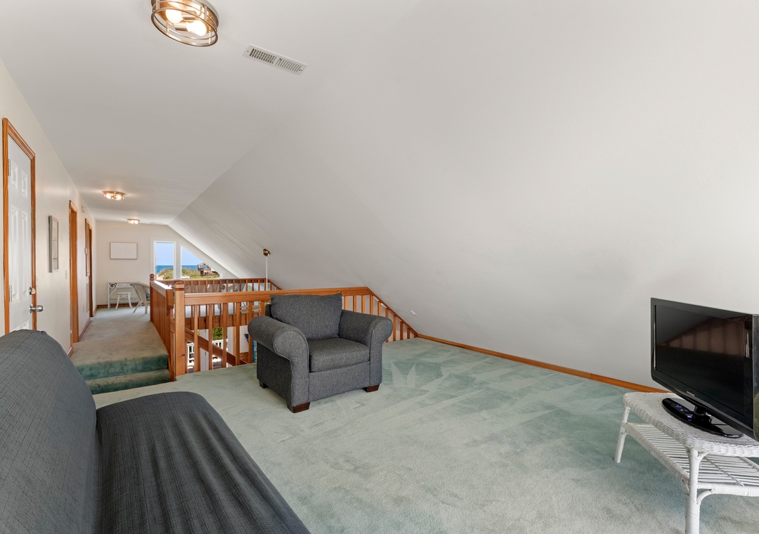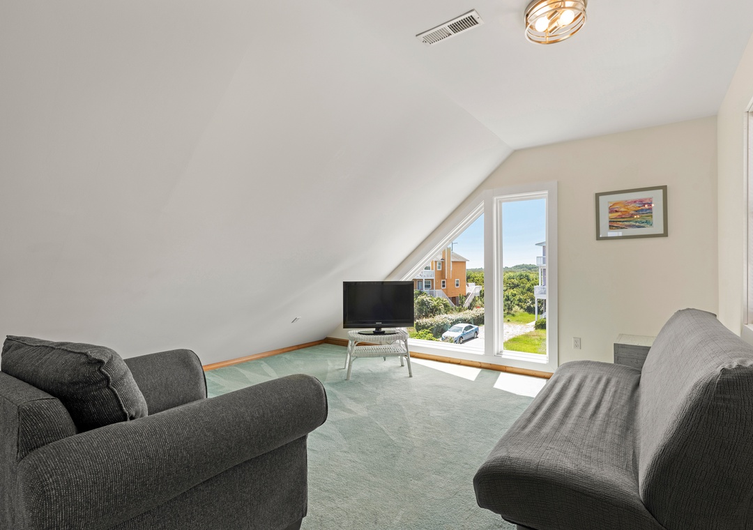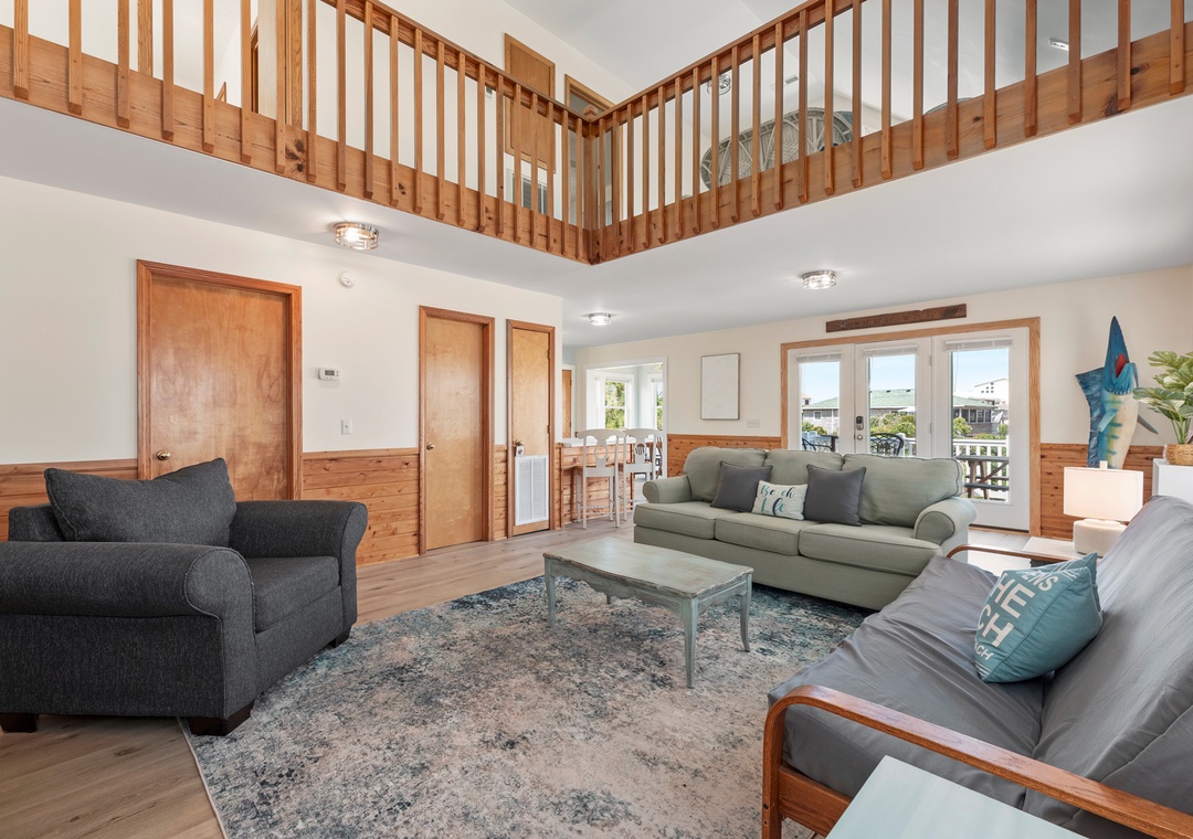Inside you will find a great room, kitchen and dining area to seat 8. Head out onto the deck for amazing ocean and sound views!