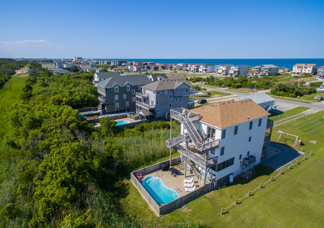 6 bedrooms, 5 full and 2 half baths. Private pool and hot tub on screened in porch, 5 decks, rockers, porch swing. Three Master Suites (with private attached baths) & one 'semi-master' bedroom. Top floor primary suite has jetted tub and shower. TVs, Blu Ray player, WiFi, horseshoe pit, pool table, and poker table with complete poker set. Three refrigerators with ice-makers and two dishwashers to make cleanup easier. Two outside showers, observation deck, and gas grill.