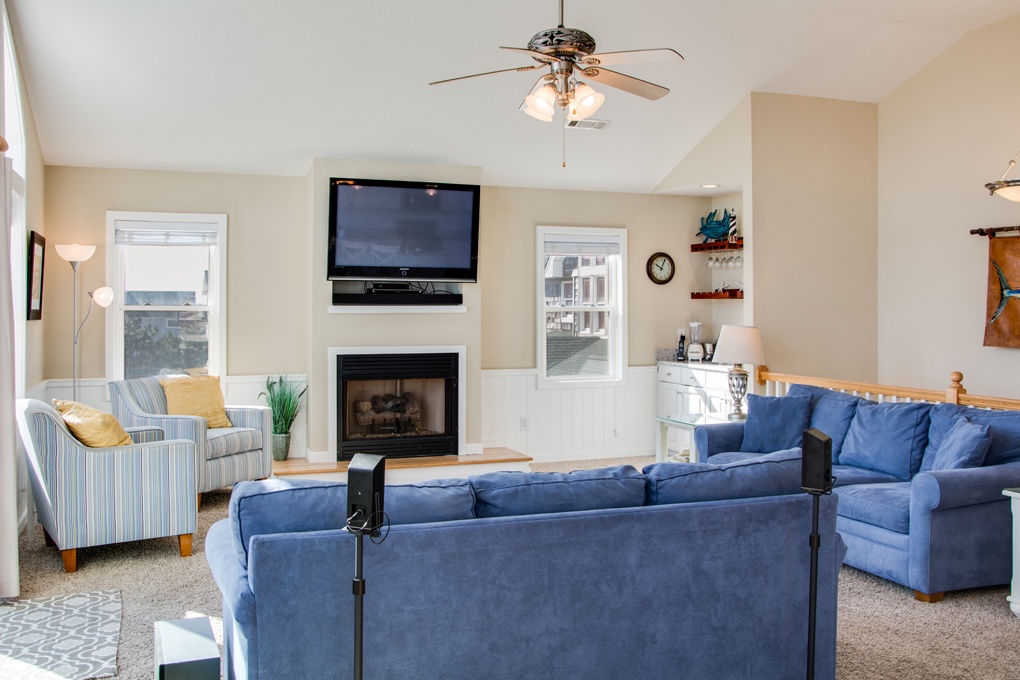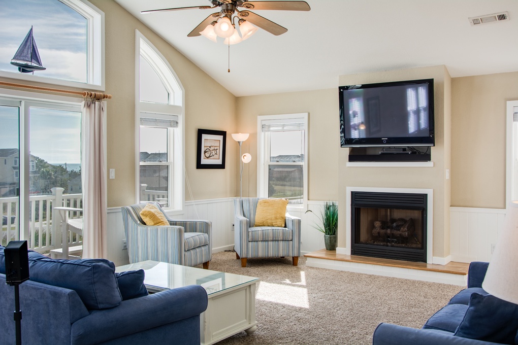 6 bedrooms, 5 ½ bath semi-oceanfront OBX vacation home; Fronting the Beach Road in South Nags Head (guests will cross the 2 lane Beach Road to get to the ocean). 24' x 12' private heated pool, hot tub, TVs, WiFi, DVR, Blu Ray players, Rec Room with Pool Table, 3 separate seating areas, fireplace, 3 wet bars, high chair, 4 full size refrigerators, basketball goal, screen porch, outside shower, charcoal grill.