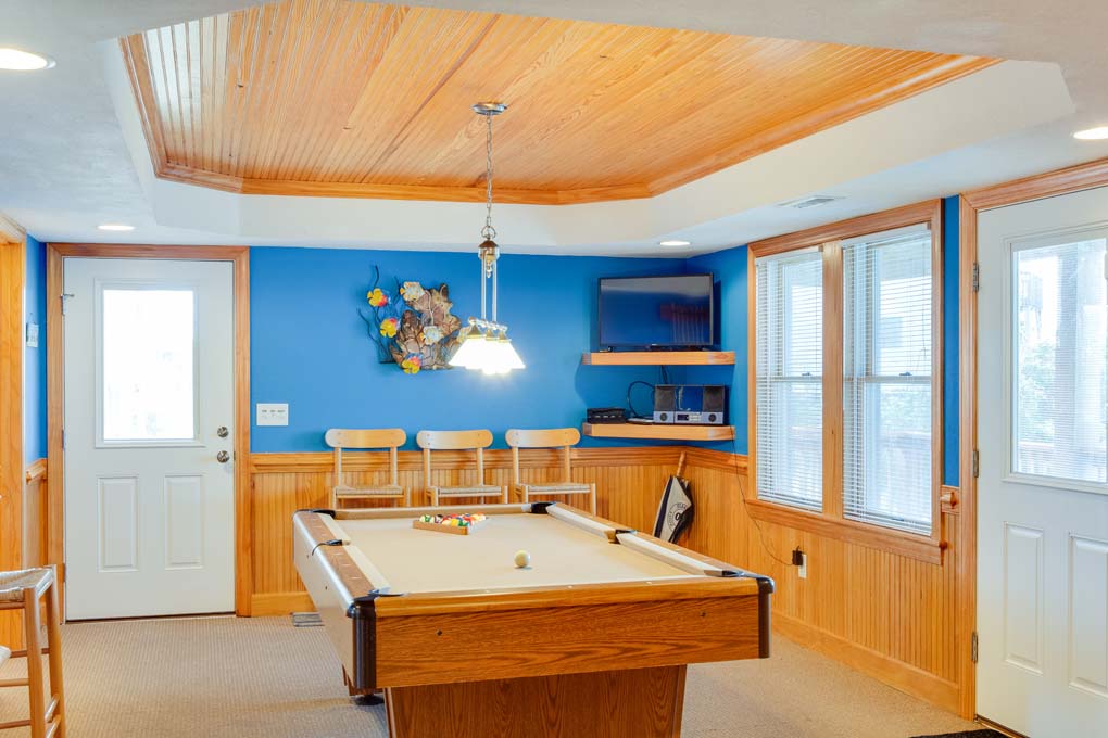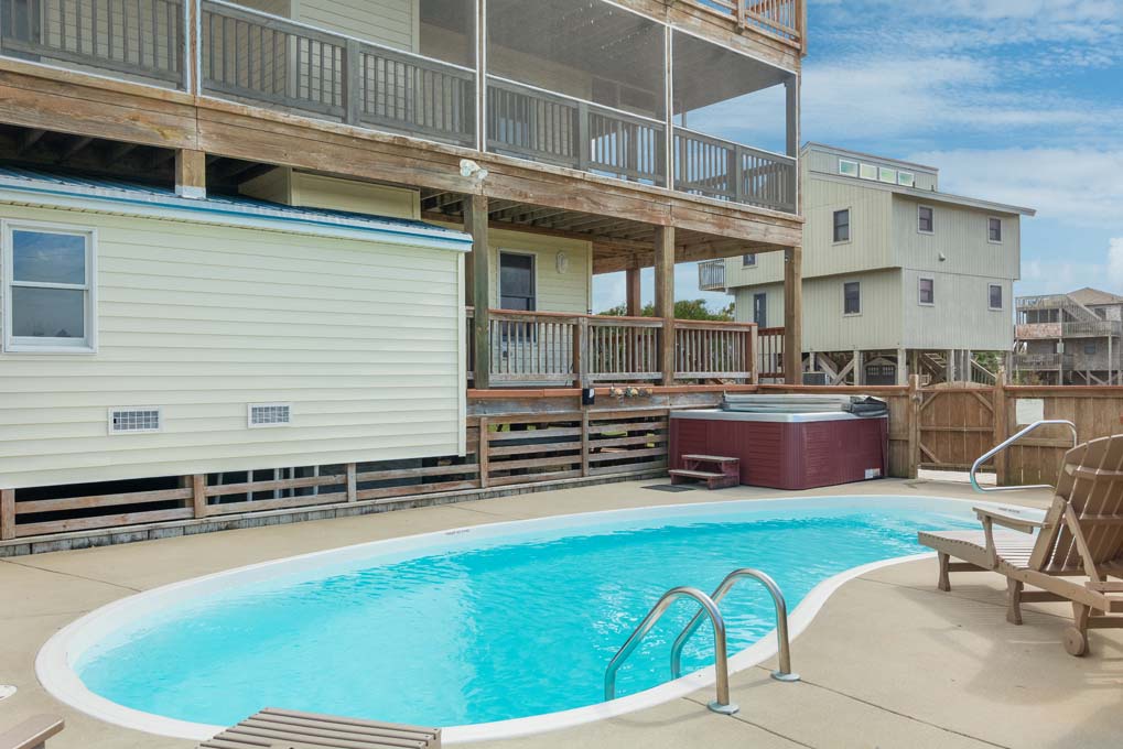 This home was perfect for my quiet family vacation. Our stay was for a week, and we had six adults and an infant. We all fit, with plenty of room for privacy. Each bedroom had a bathroom, plus two half baths. The kitchen was spacious for cooking meals throughout the week. There is also an additional fridge and freezer in the ground level room for extra space! The walk to the beach was a quick 5 minute walk, but just be aware the dune you’ll have to walk up is steep. We brought a wagon and a strolled that had to be picked up and carried over the dune- for our group, it was no problem. The pool, hot tub, outdoor shower, putting green, and billiards table came in great use for us to stay busy on nights we stayed in. They have someone clean and service the pool daily. The grocery store is about 10 minutes away, and carries everything you’d need. Fishheads, one of our favorite spots in OBX, is a mile and a half away. Make sure you see the sunsets from the deck! 100% would recommend!- Reviewed On: 8/31/2025