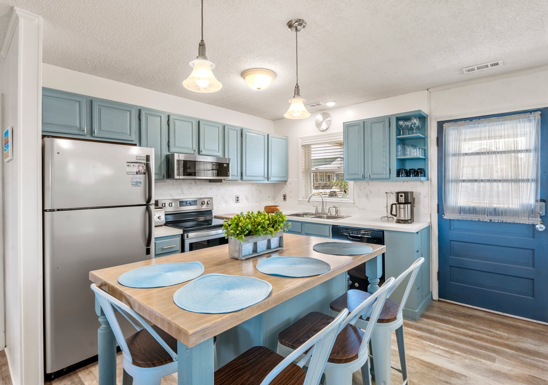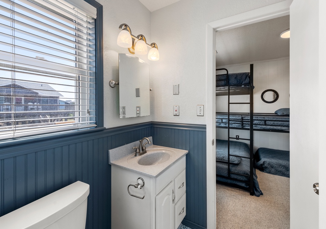 After a day of fun in the sun, your family can relax and unwind inside the beautifully decorated, open-concept great room. When you're not dining out, prepare meals in the updated kitchen with stainlesss steel appliances and a center island with bar seating. Two queen bedrooms share a renovated Jack-and-Jill bath, and a king bedroom and bunk bedroom have access to a second full bath in the hall.