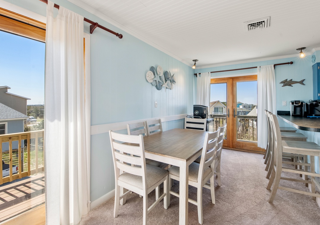 You will be thrilled with the Amazing View of the ocean and sound from the crow's nest in this cute and comfortable, semi-oceanfront home. Your family and furry friends will love the quick walk to the beautiful ocean where you can relax in the sun, surf and search for shells and sea glass. The crow's nest is perfect for gathering to watch the stars and enjoy the sound of the waves and smells of the salty air.
