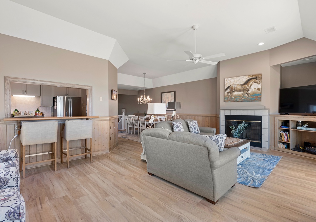 Step inside and discover the elegant living spaces, where you can unwind and entertain. The wet bar, wine fridge, and mini bar are perfect for hosting gatherings or enjoying a quiet evening with your favorite drink.