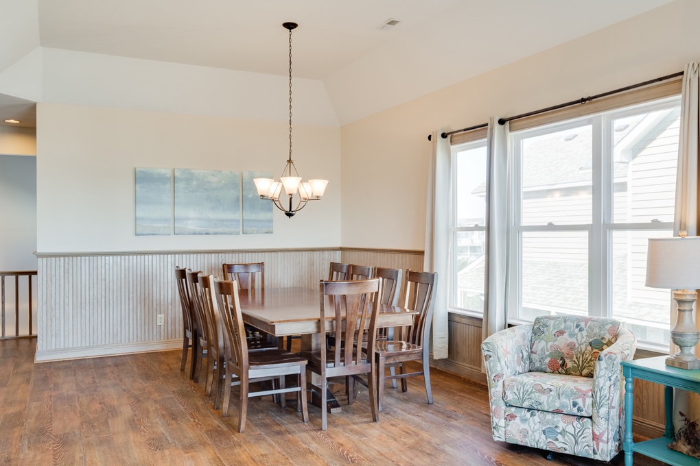 Awesome layout for the house. Accommodated 2 small families (4 adults/3 kids under 10) perfectly. Almost too much space. Top floor living area is a much better design for all to enjoy, rather than an oceanfront master suite hogging the view. Beach Break was clean and well appointed. The kitchen utensils could be checked and re-stocked or updated and a few light bulbs replaced, but thats about it! Cooked many meals during the week in the spacious kitchen and on the grill, table fit more people than we had. Outdoor seating was good for the incredible ocean view. We have stayed at MANY beach houses over the years, and this one is set up the best so far!- Reviewed On: 7/10/2023