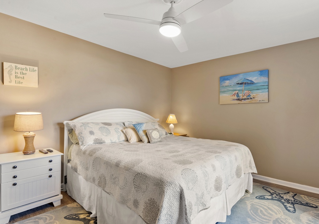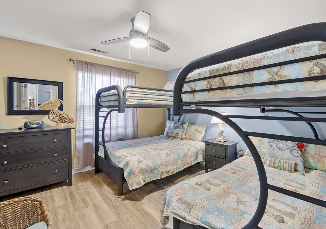 Step into comfort and coastal charm at Sandpiper Cay 706, a delightful 2-bedroom condo nestled in the heart of Sandpiper Cay. Perfectly designed for families, this gorgeous getaway features a serene king bedroom and a fun, bunk-filled second bedroom with two pyramid bunks, ideal for kids or extra guests.
