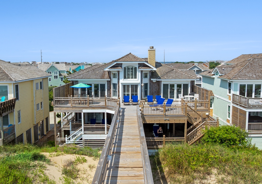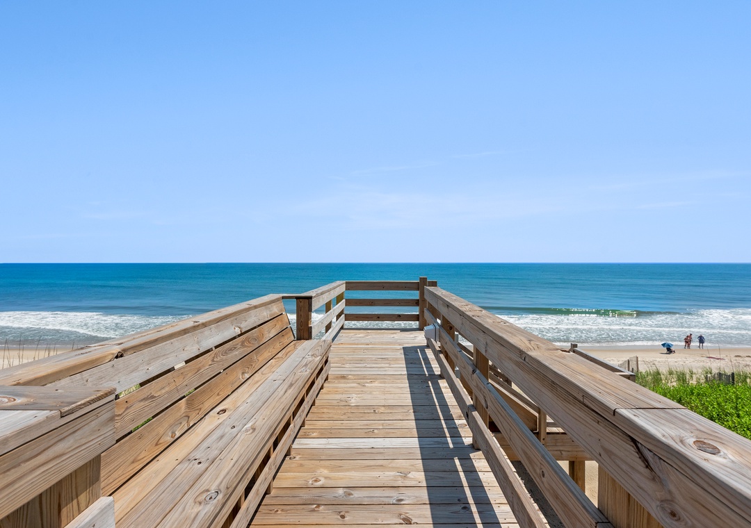 CINDY’S DREAM is a beautiful oceanfront home so comfortable, it invites you to make new OBX memories. It delivers the luxury and location that will make your Outer Banks experience unforgettable. Sit on the spacious upper deck at night to view the vast sky full of stars or during the day to watch the ocean. If you don’t want your feet to get sandy, you can sit on the bench at the end of the private walkway leading to the beach and ocean.
