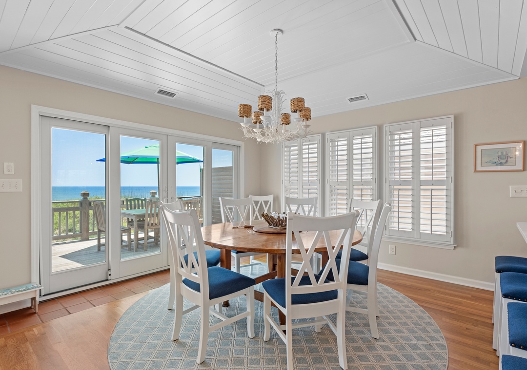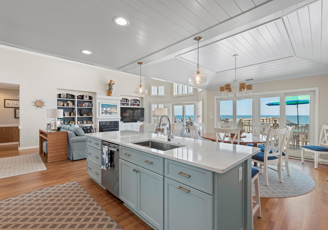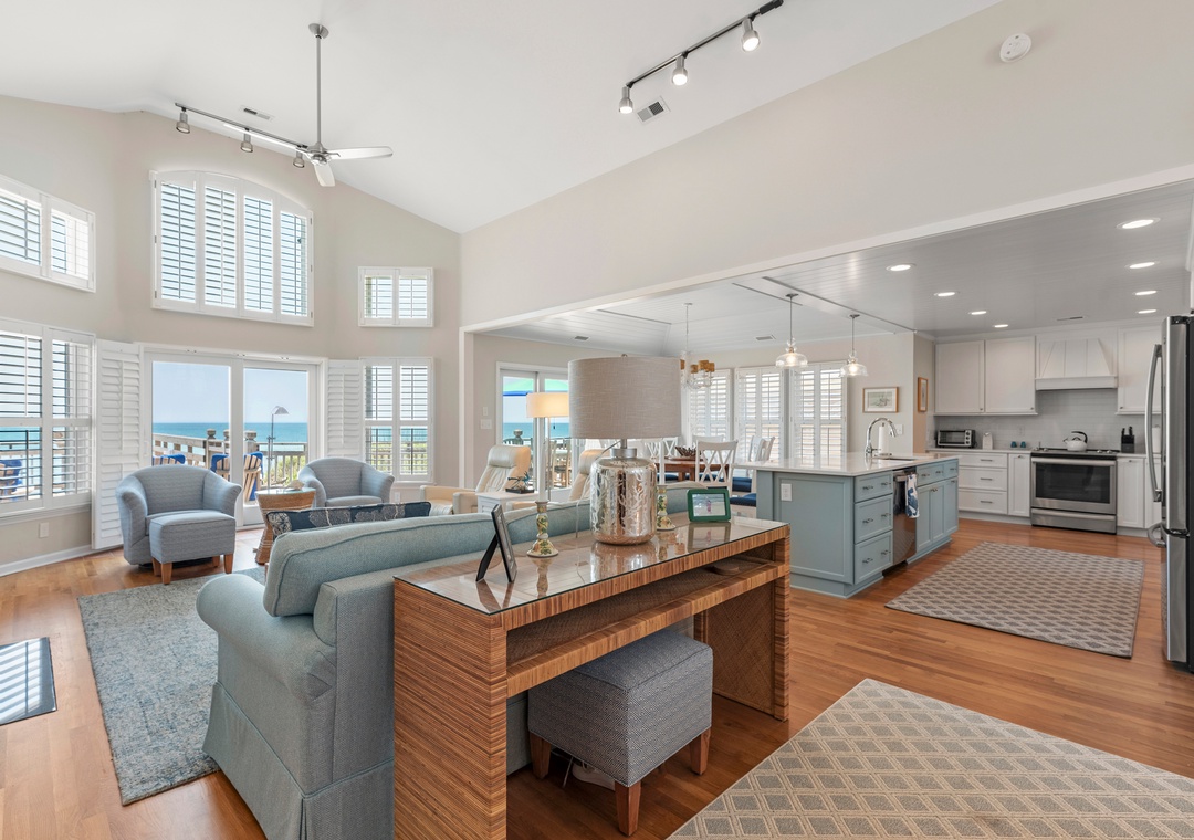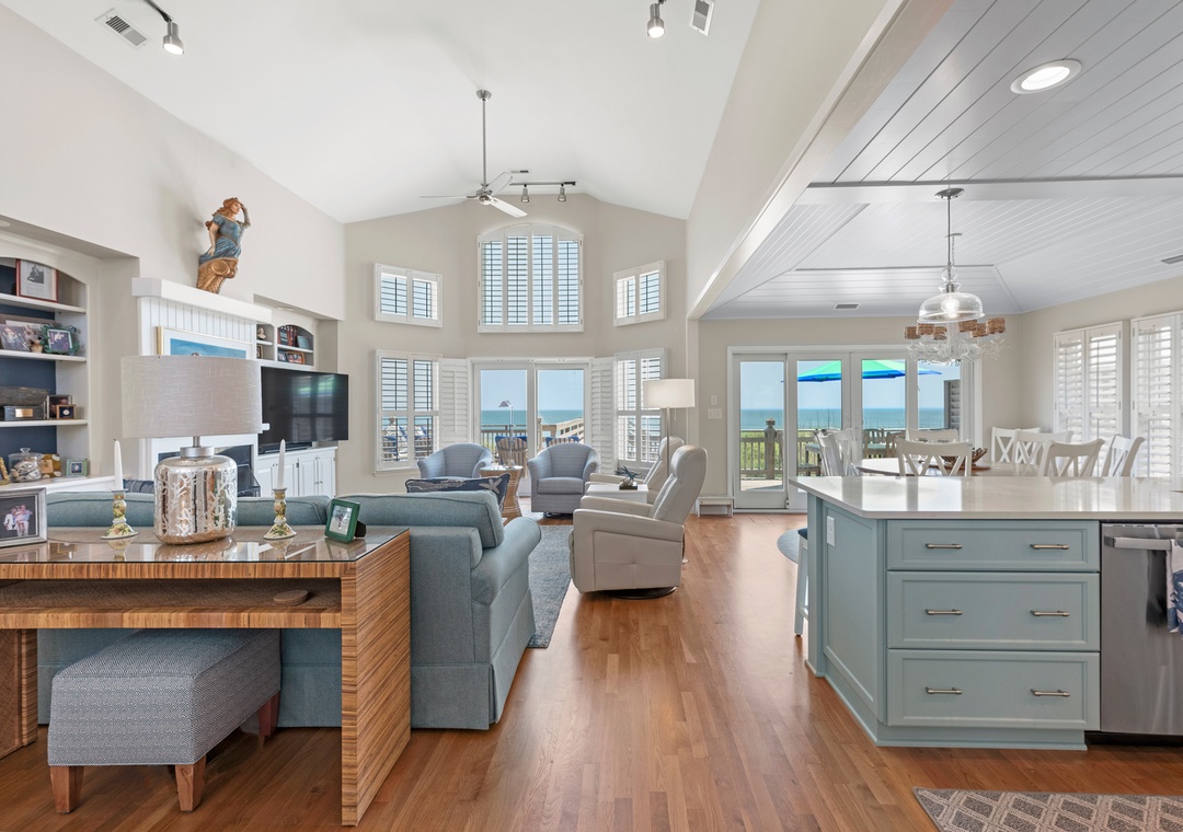 When you are not on the beach or enjoying all that the Outer Banks offers, you can spend your time in the vaulted ceiling, open concept layout of the great room, kitchen, dining room and board game/puzzle nook. There are multiple sliding glass doors and windows for tremendous natural light beaming throughout the open space along with effortless indoor/outdoor flow.