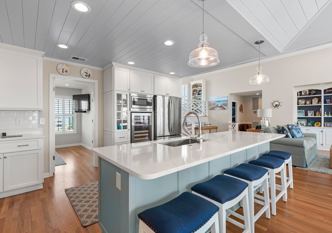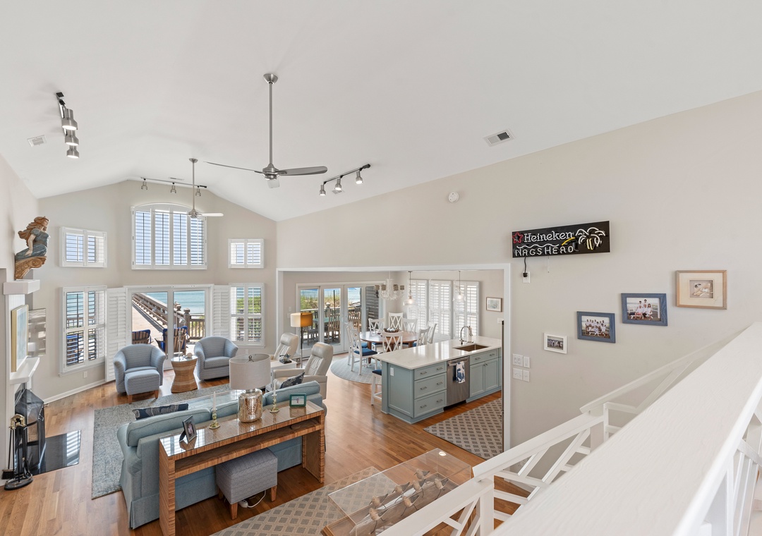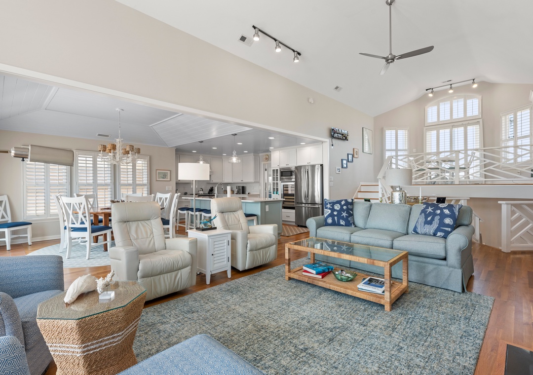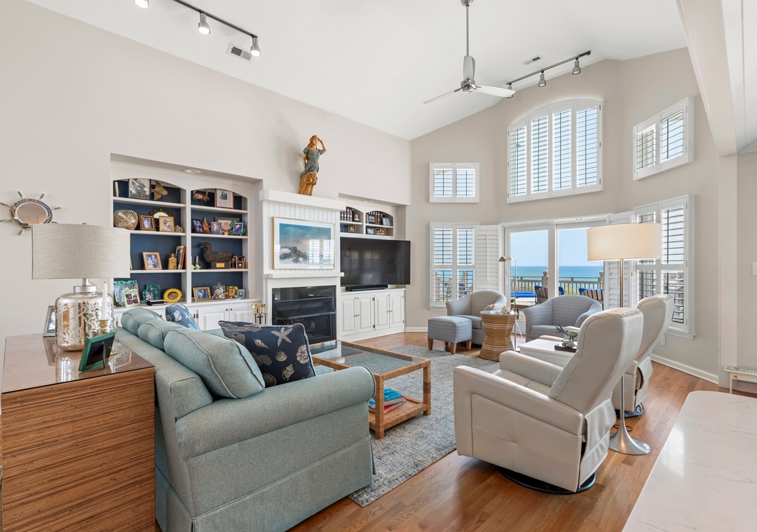 When you are not on the beach or enjoying all that the Outer Banks offers, you can spend your time in the vaulted ceiling, open concept layout of the great room, kitchen, dining room and board game/puzzle nook. There are multiple sliding glass doors and windows for tremendous natural light beaming throughout the open space along with effortless indoor/outdoor flow.