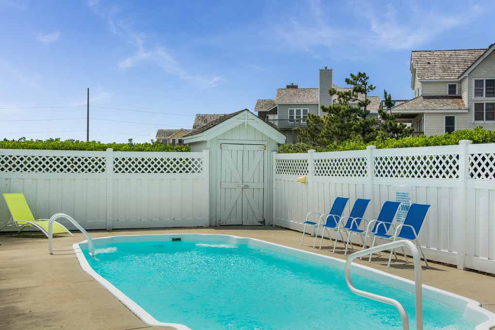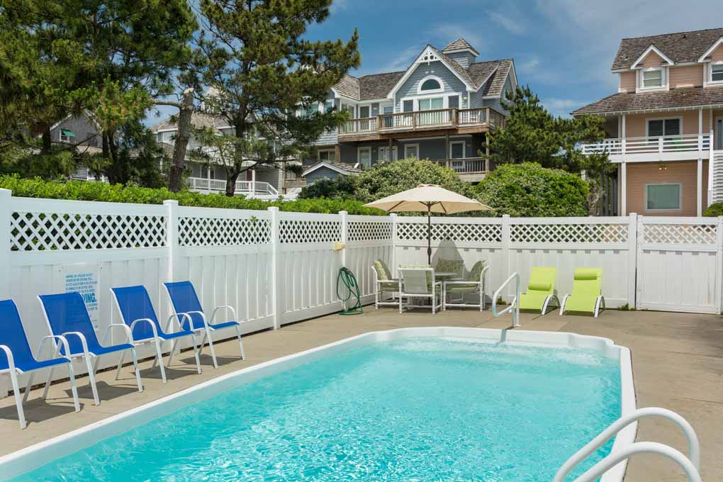 Located in **The Village at Nags Head**, Sea Spray features several upgrades, including elegant granite kitchen countertops. Enjoy a range of amenities, including a 12' x 28' private pool for relaxation, a hot tub for unwinding, and a game room equipped with a foosball table, pool table, under-counter refrigerator, and TV entertainment center.