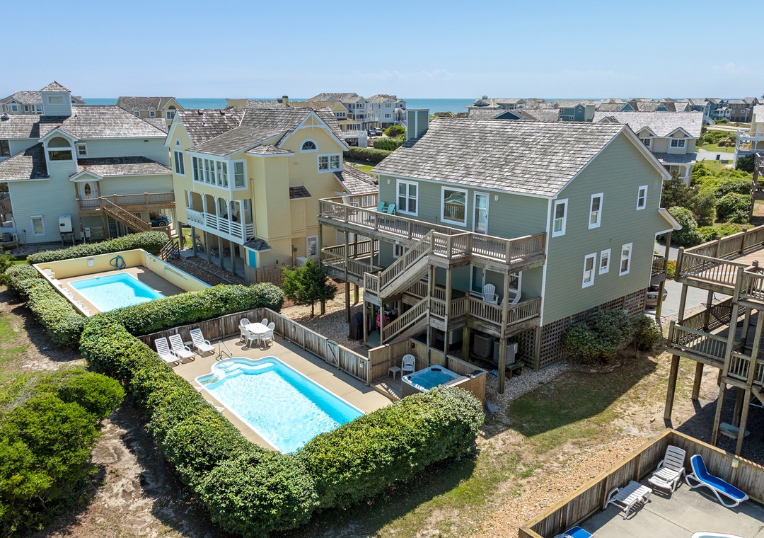 Everything you need for the perfect vacation is here. The beach is just a few steps away by boardwalk at the end of a quiet cul-de-sac and you'll love having your own private pool and hot tub at 'Flying Colors'. This home is close to great Outer Banks shopping, restaurants and fun attractions for the whole family. Come relax and enjoy your Outer Banks vacation.