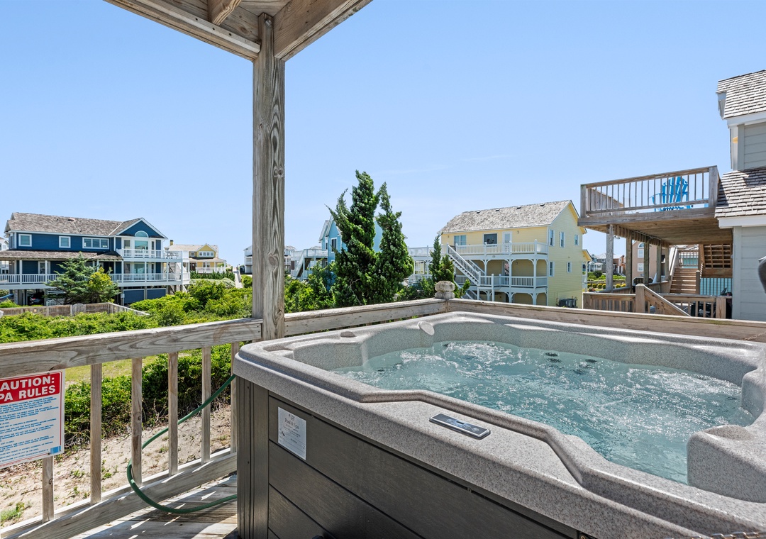 Banx Sea is a newly renovated home in the sought-after SeaSide community of the Village at Nags Head. The tastefully furnished interior, neutral palette and coastal-inspired accents make Banx Sea the fresh and updated beach house your family has been looking for. Stylish yet practical LVP flooring runs throughout the common areas and all five bedrooms. After a day at the beach or exploring Nags Head, come home and curl up on the sofa in front of the electric fireplace. Vaulted ceilings and crisp white walls give the great room a bright and airy feel, and the open-concept layout is ideal for gathering. There's no shortage of outdoor space either, with two levels of decking for enjoying the salty air and coastal breezes. After a relaxing soak in the hot tub, retreat to the top-level primary suite with updated ensuite bath. Four more bedrooms are located on the lower levels, providing plenty of room for family and friends.