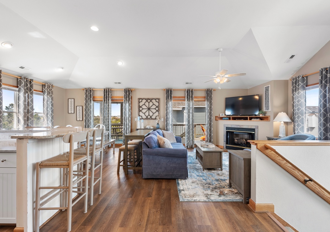 We stayed at seven sister 7 and it was our first time in the OBX. Working with village realty was top notch from finding the house over the internet to using the app to experiencing a home with linens and a cleaning service all rolled into the price. The house was very well appointed and very spacious. The location and pool were excellent. I do have three recommnedations for improvement: 1) plant tall trees to block out the noise from the highway 2) each room has creaky boards that need to be screwed down and 3) add room darkening curtains to the bed rooms.- Reviewed On: 6/27/2015