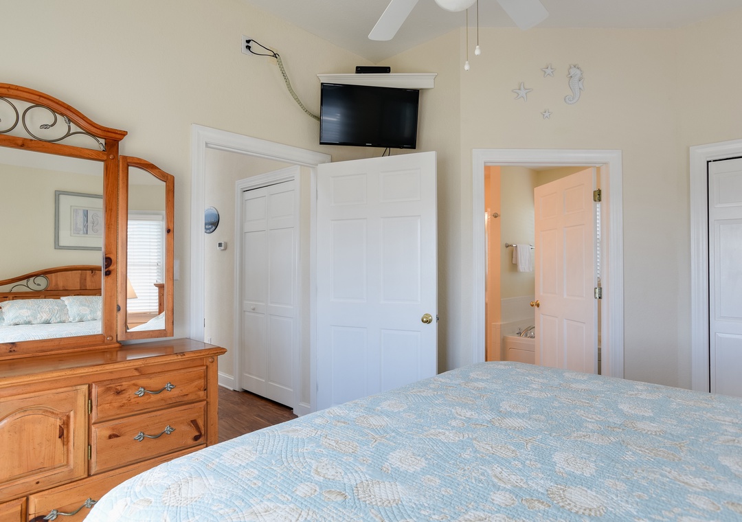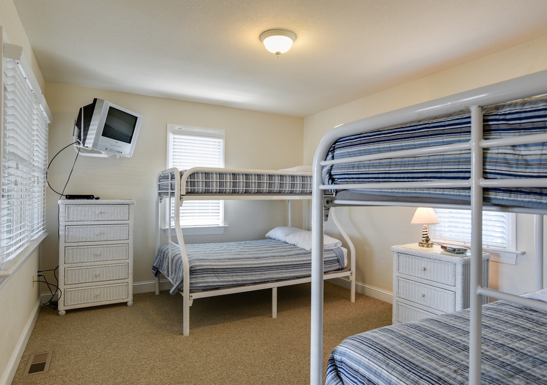 This 4 bedroom, 3 ½ bath vacation home features: community pool, private hot tub, rec room with full-size pool table, 2 master bedrooms, TVs, DVD players, loft with card table and bumper pool, large capacity ice maker, outside shower, grill, outside fish cleaning table with sink, beach chairs, umbrella, beach cart, and charcoal grill.