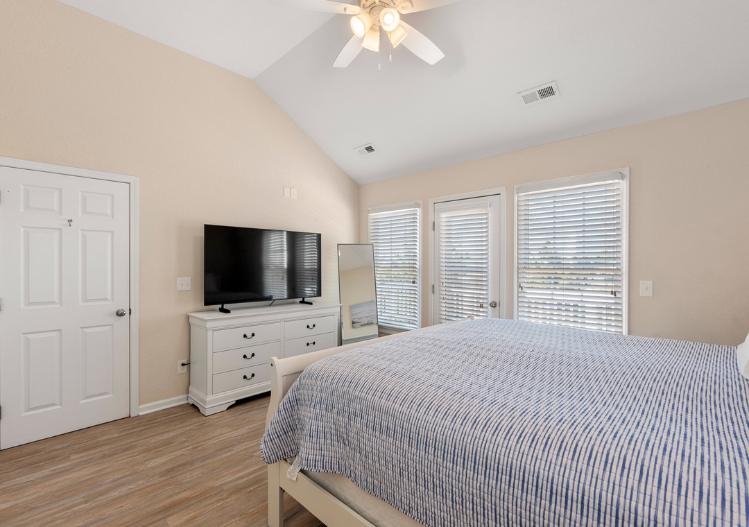 The house is great. Big and comfortable. Great upgrades with the new carpet and couches. I stayed here 2 years in a row. The only request I wish they would do is put some type of locking device on the doors going out to the decks and doors going outside. My 4 year old and 5 year old were opening all the doors and going everywhere. A high lock like the one on the sliding door leading to the back yard would make the house alot safer when you have kids running all over the place. That being said the house is great. The location is awsome and the reason we will be back is because the owner allows dogs and we cant leave the pooch home. Great house.- Reviewed On: 7/10/2023