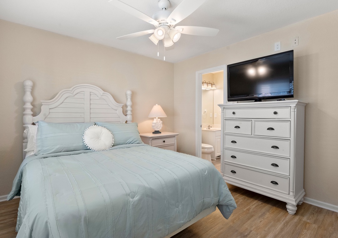 The property was very nice and decor was pretty. We loved the location for shopping, restaurants and hanging with other friends who were close by. We also loved the community pool and hot tub. Suggestions: new queen mattress in one bedroom because springs coming through and not comfortable; new bedding pillows and a ceiling fan for the queen bedroom. Everything else was wonderful.- Reviewed On: 6/27/2023