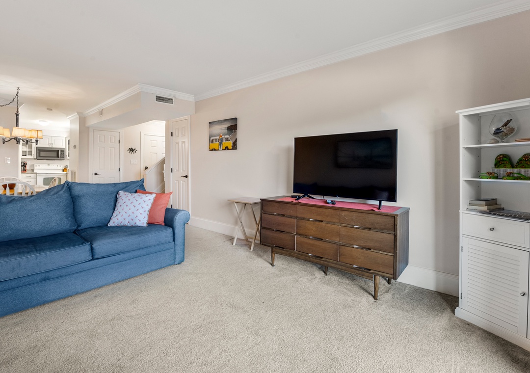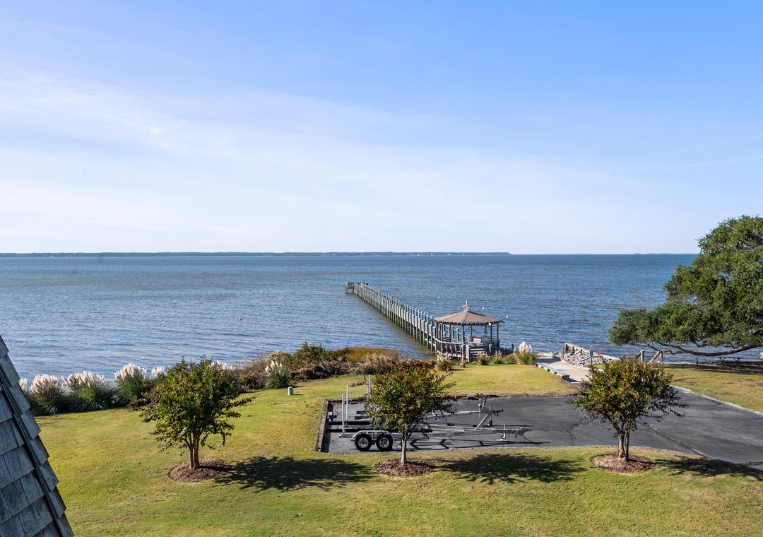 Experience Life On A Sandbar, a waterfront townhome in the secluded Villas on Roanoke Sound in Nags Head. The end-unit layout offers maximum sound views and more privacy. This bright and cheery retreat is comfortably furnished and ideal for small families or couples. The top-level primary suite includes a private soundfront balcony - the perfect place to enjoy your morning coffee. Take advantage of a variety of community amenities, including two outdoor pools, pickleball and tennis courts, clubhouse and playground. Admire the stunning, photo-worthy sunsets from the 400 ft. soundside pier with gazebo. Guests will have direct access to the sound with a secluded beach area and a boat ramp for launching small vessels and water toys. Kayaking, paddle boarding, windsurfing, fishing - the possibilities are endless for a fun-filled day on the water. When it's time to hit the beach, two nearby public accesses are just a short drive away and provide free parking. The central location in Nags Head means you'll be minutes from a variety of shopping and dining options, as well as attractions including Jockey's Ridge State Park, Nags Head Fishing Pier, and Dowdy Park.