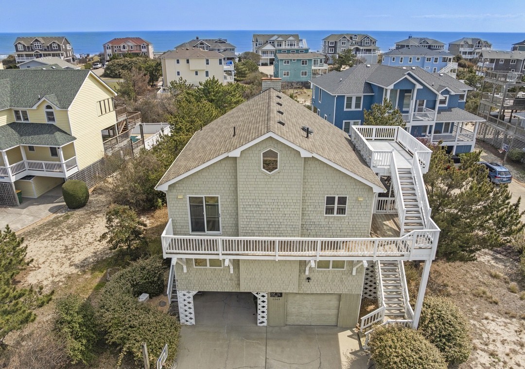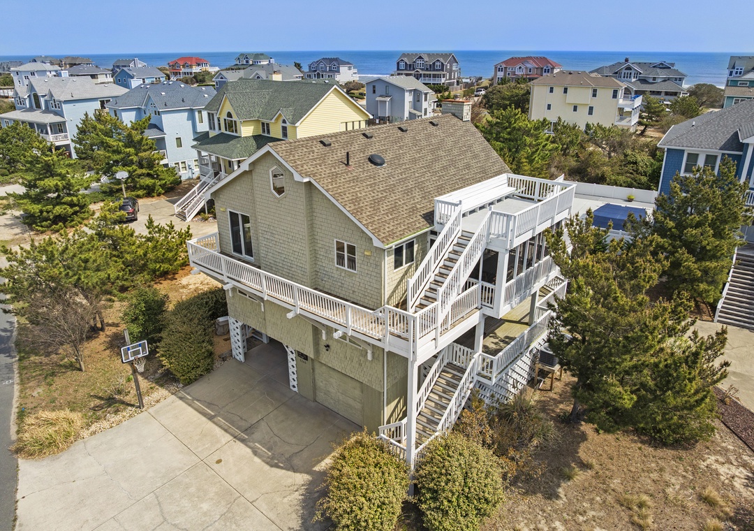 Shell Cottage is a well-appointed oceanside home situated in Corolla's Villages at Ocean Hill. Guests will enjoy convenient access to the beach (less than 500 feet away) and a variety of exclusive resort amenities. After a day of sun, sand and surf, come home and splash in the private pool or take a relaxing soak in the hot tub. Head up to the rooftop deck to admire views of the ocean, sound, lighthouse, and spectacular sunsets.