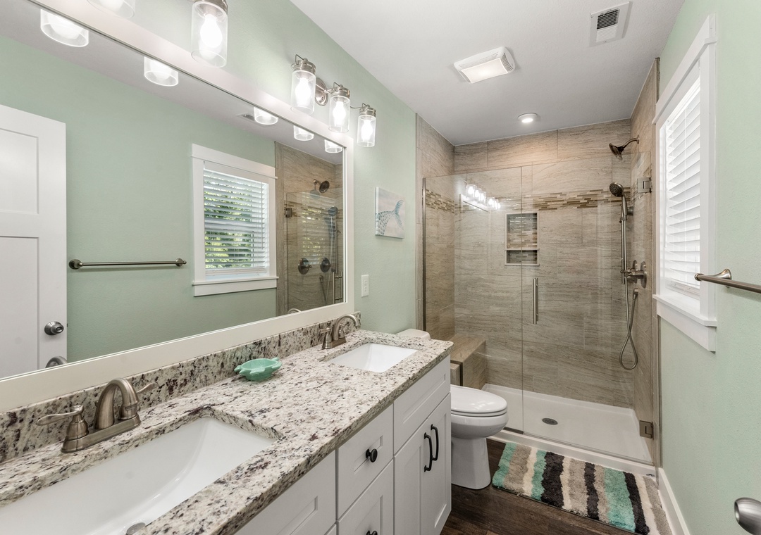 The house is beautiful, especially the upper floor and the kitchen. We loved the front porch and the poolside area is nice. We were a little disappointed about the tiki bar, which looks open and spacious in the pictures but is actually in a damp, shady corner and was impossible to use because of mosquitoes and horse flies. However, everything else was great. We had a problem with the AC and they were prompt to send someone out to fix it. The walk to the beach is easy and accessible. And, the hot tub is spacious and gorgeous! We really enjoyed our stay and all the activities and restaurants that were so close by.- Reviewed On: 6/13/2025