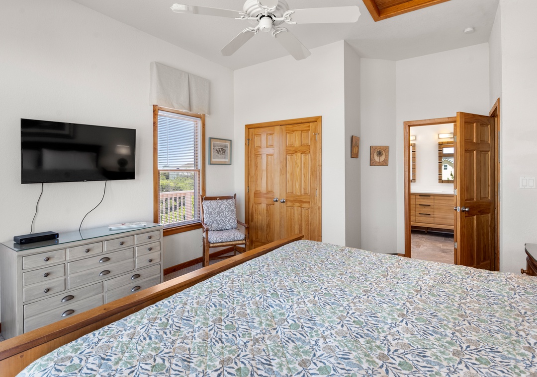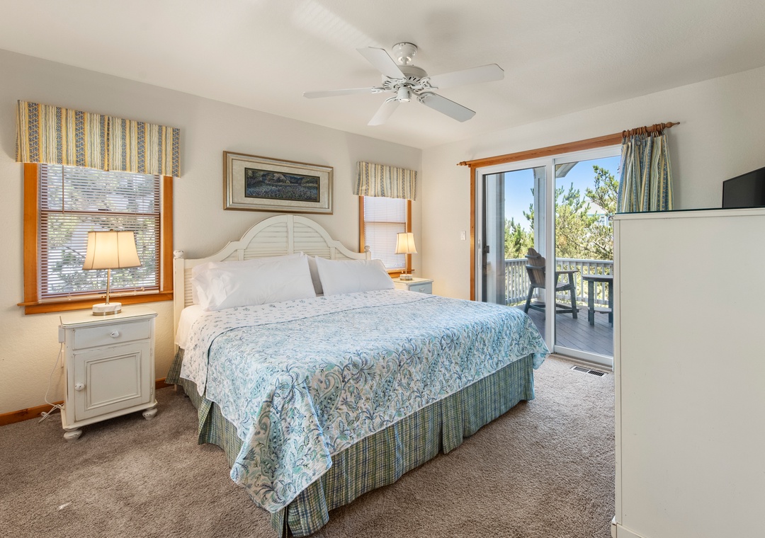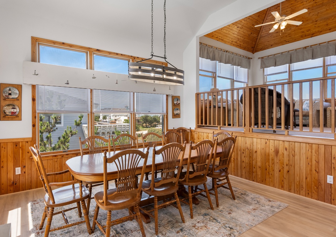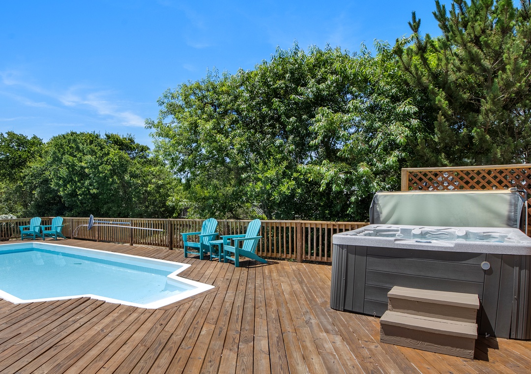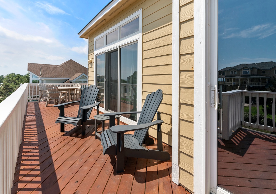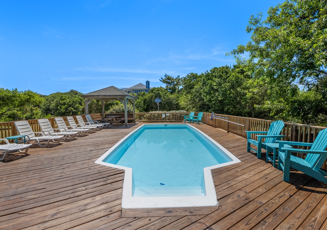 Looking for a beach house with a private pool, ocean view AND easy access to the beach? Then Starboard Home is indeed the right home for you! Drop anchor at this semi-oceanfront home located in the popular Whalehead Beach community of Corolla. The Sturgeon Steet public access is conveniently located just three lots away for a short, safe walk to the beach. Your family will love having a private pool and hot tub for around-the-clock fun and relaxation right in your backyard! Inside, a reverse floorplan and floor-to-ceiling windows maximize the ocean views from the great room. Soaring vaulted ceilings and an abundance of natural light make the entire space feel bright and airy. The chef in the family will especially appreciate the open-concept layout, where they can enjoy the view and be part of the action even while preparing meals. Get cozy in the Ships Watch, where you can curl up with a good book while admiring the ocean view. Three levels of decking including a screened-in porch provide plenty of outdoor space for enjoying the salt air and ocean breezes. Head up to the rooftop deck to the claim the best seats in the house for spectacular sunsets.