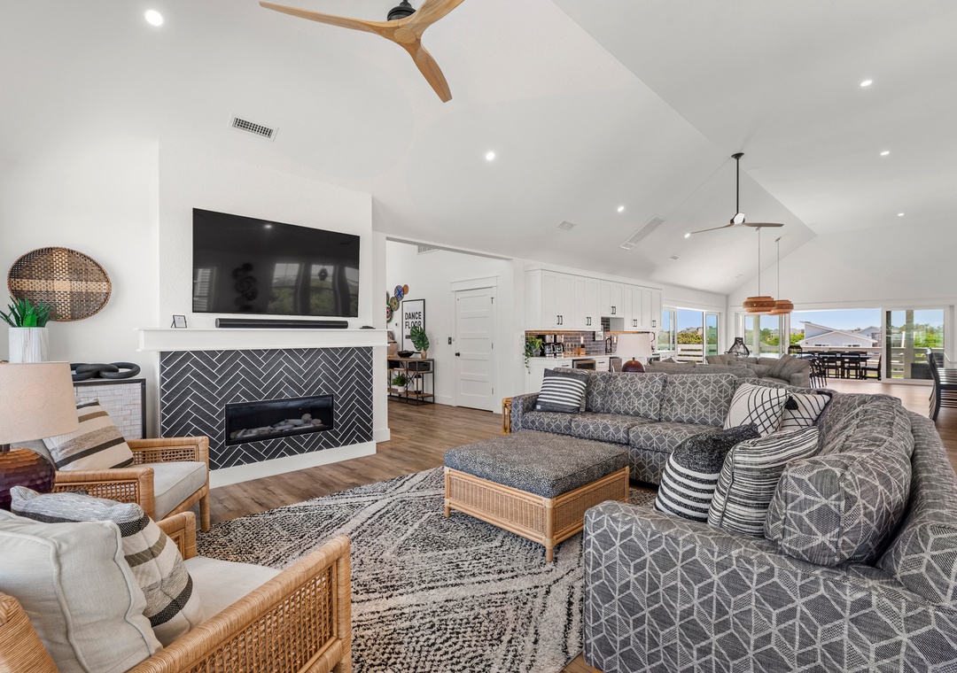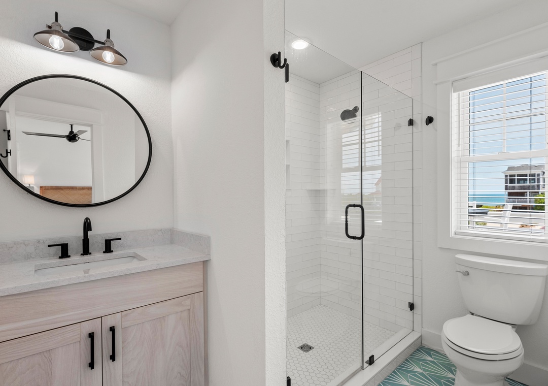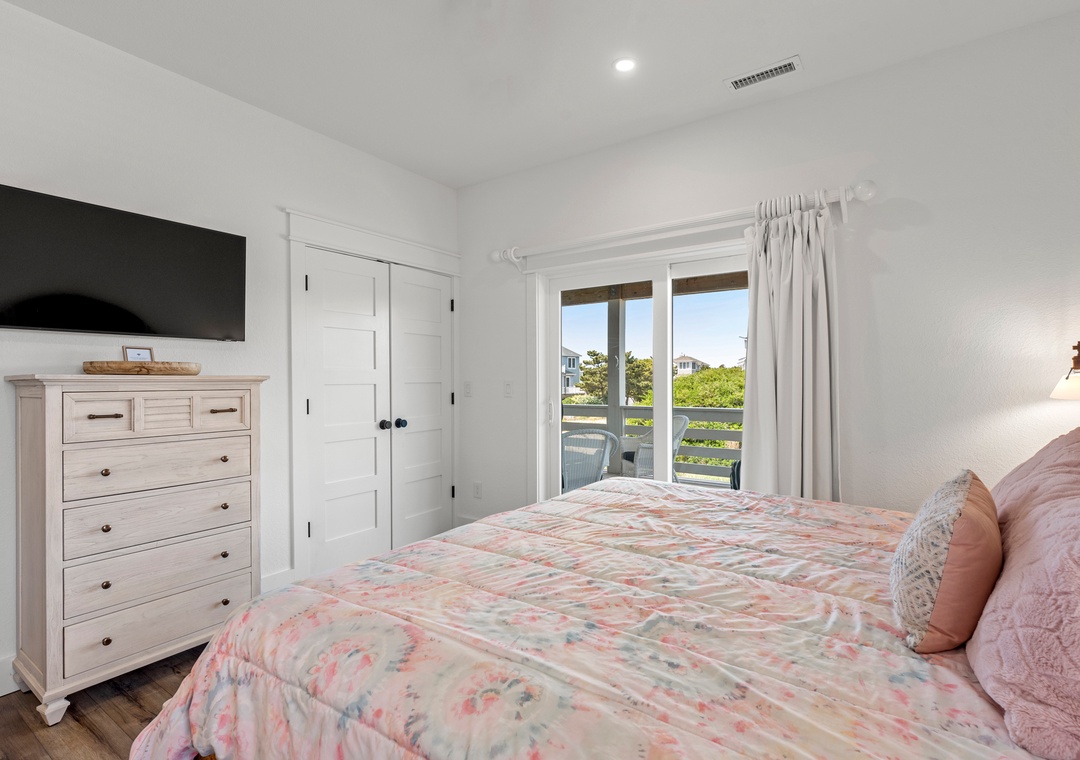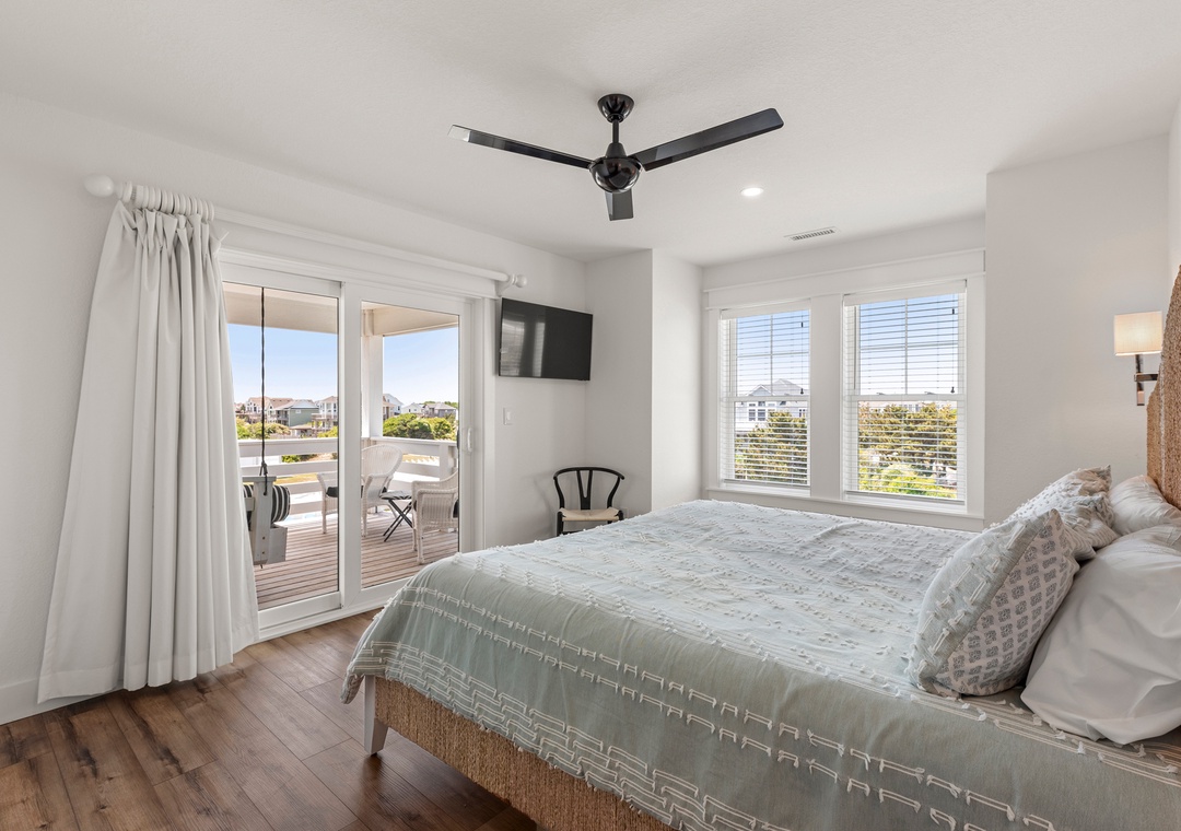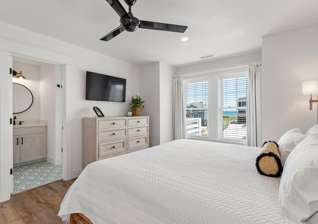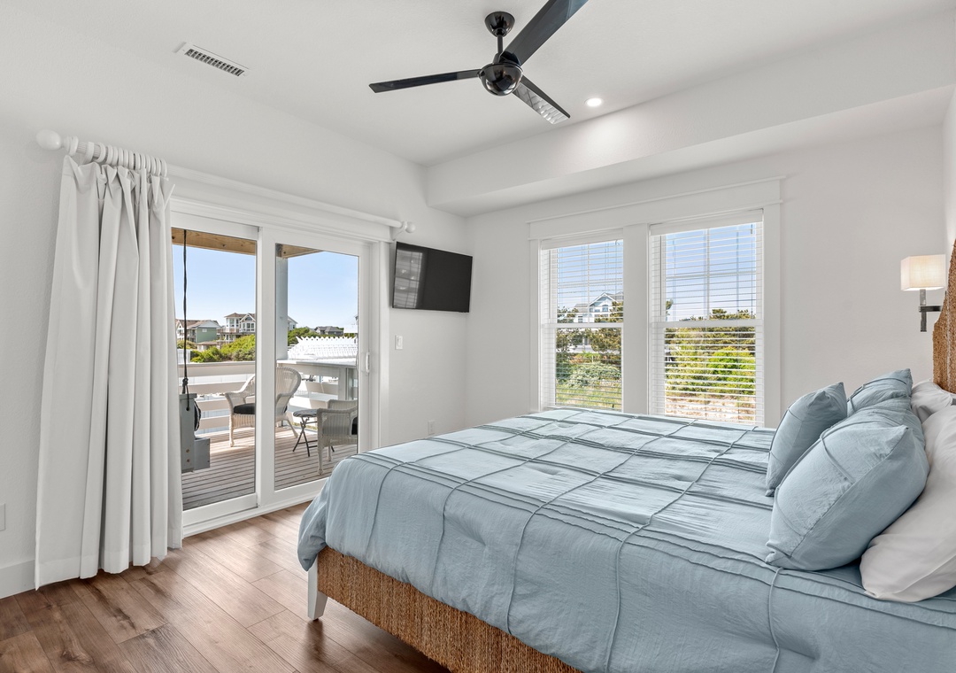 Inside, bask in a spacious living area with an electric fireplace, entertainment at your fingertips including a surround sound via Sonos throughout the house and outdoor spaces with multiple zones to control from your phone. Enjoy cooking? Take advantage of all the kitchen has to offer starting with the granite countertops, bar area, two refrigerators, and a wall oven/ gas range with a large hood. When the cooking is all done and you're ready for a beach house family dinner, gather around the 14-seat dining room table in the dining room that has rear deck access. Above the top level is ships watch that offers views of the ocean far and wide! Within the top level there are three king master bedrooms, two with private deck accesses and a hall half bathroom.
