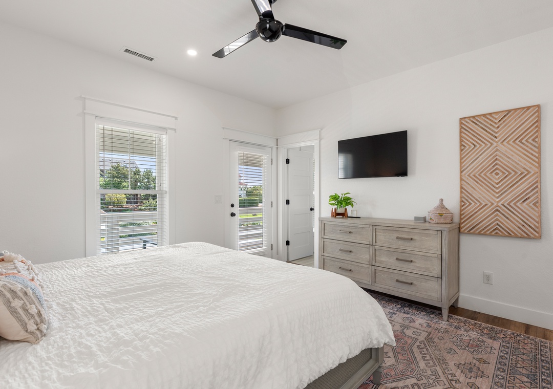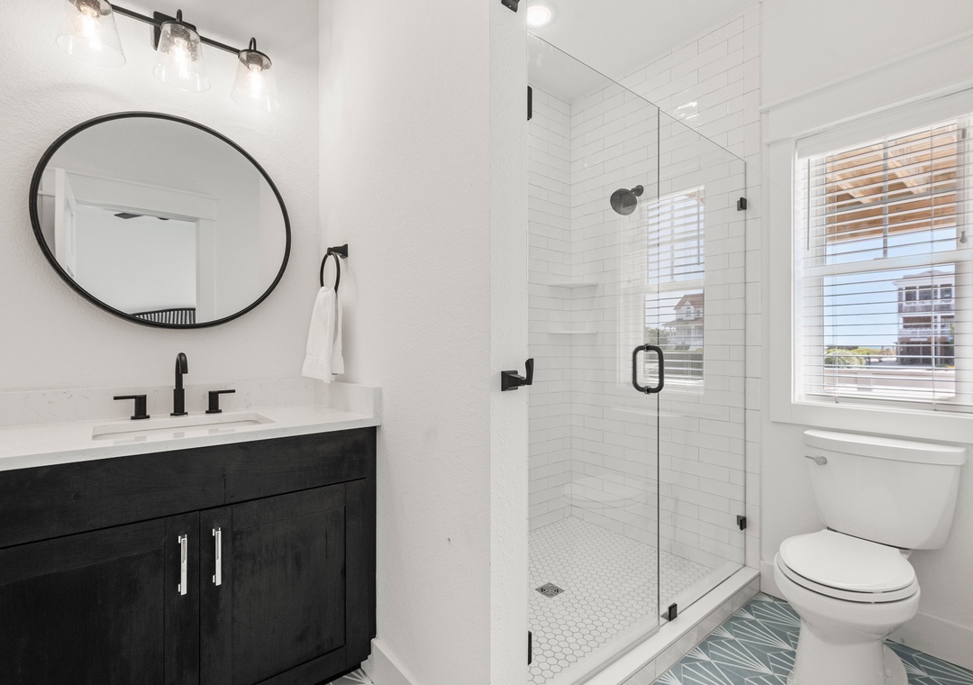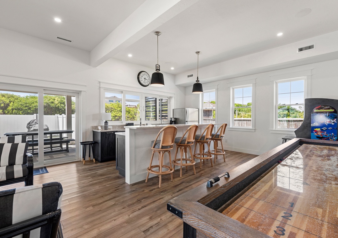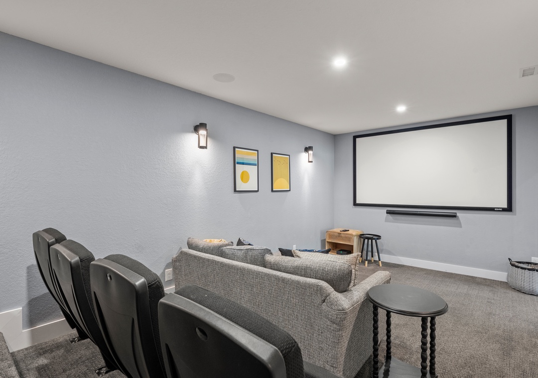 On the ground floor you have another king master bedroom, an additional washer and dryer closet, a game room with a shuffleboard, arcade, huge kitchenette, a half bathroom and access both a screened and unscreened porch where you can make your way out to the heated private saltwater pool and hot tub. Want more? Check out the Luxury golf simulator experience (TruGolf Brand with 90+ courses available for play) with a 4-seater bar and the three row theater room!