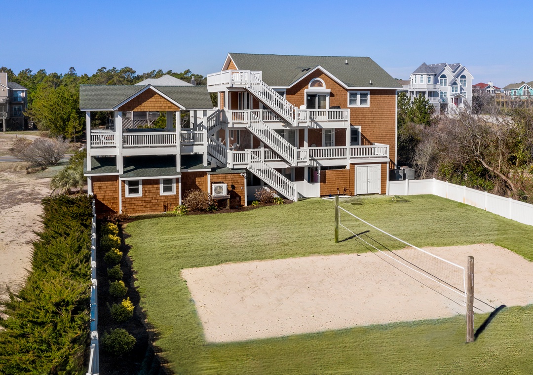 This house literally had it all! Our family of 7 adults and 8 children were very comfortable throughout the home. The kids enjoyed their space in the basement, volleyball court, and tiki bar. The puzzles throughout were a great touch, and we also enjoyed putting together a few puzzles too. The kitchen was well stocked with everything our family needed, as well as the tiki bar. The ice maker in the tiki bar and extra beach chairs were very much appreciated, too! TVs are in just about every room, but we had a difficult time working the main one in the living room. The remote is not user friendly. This is our 3rd time in Corolla, and this was the best home we stayed in. The location of the home is perfect! We hope to return! Thank you for sharing your home with our family!- Reviewed On: 7/1/2022