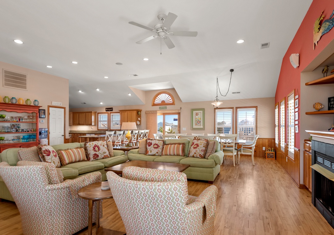 Wish You Were Here is in a prime location in Corolla, where you're a short walk to the beach, and close to the Timbuck II shopping area, which includes a myriad of shops and boutiques, a grocery store, seafood market, produce stand, and delicious restaurants. Climb the Currituck Lighthouse for the stunning ocean to sound views, visit the historic Whalehead Club, or drive a short distance to Carova to see the famous wild horses roam the shoreline. You will Wish You Were Here year after year!