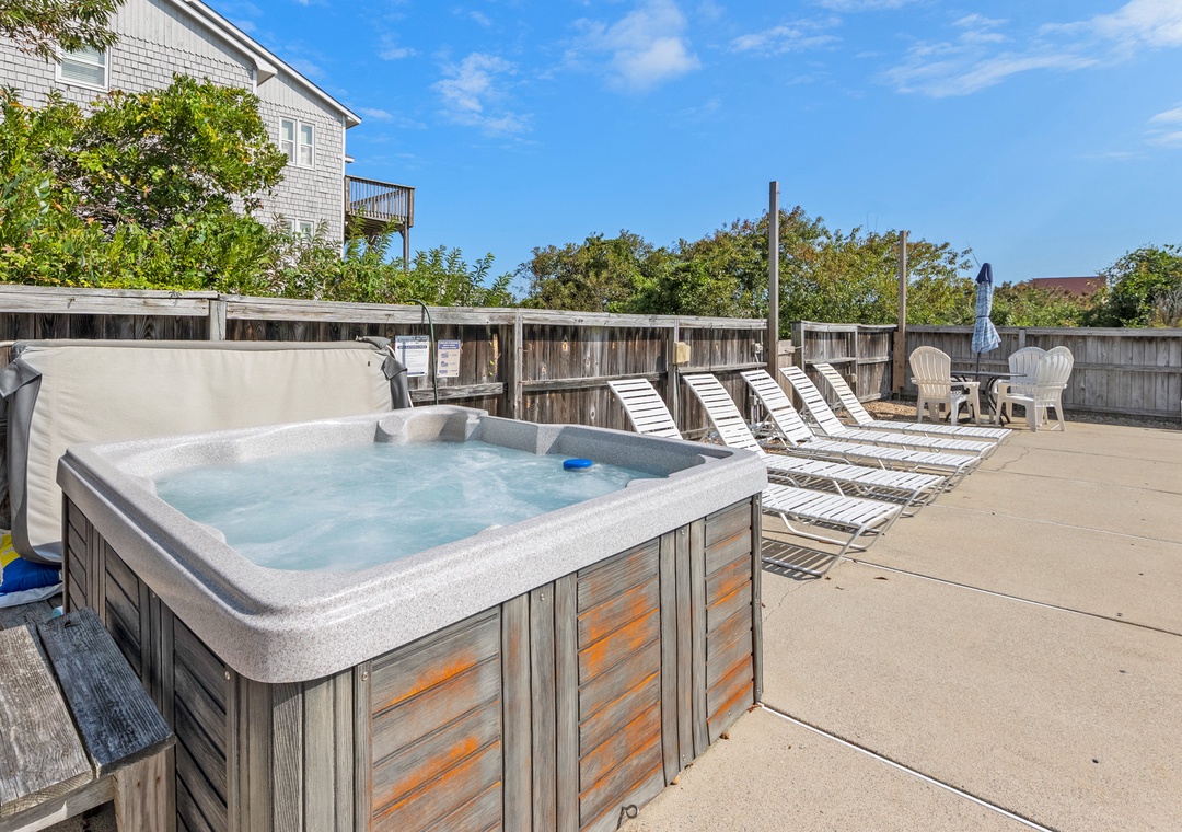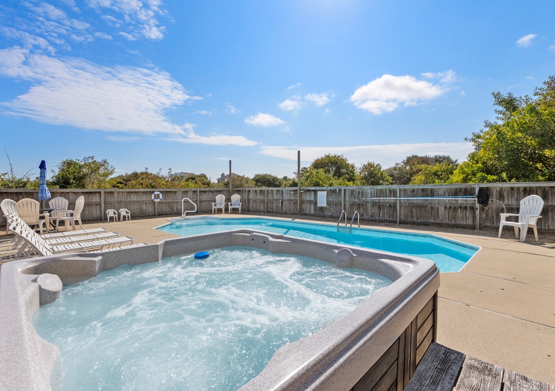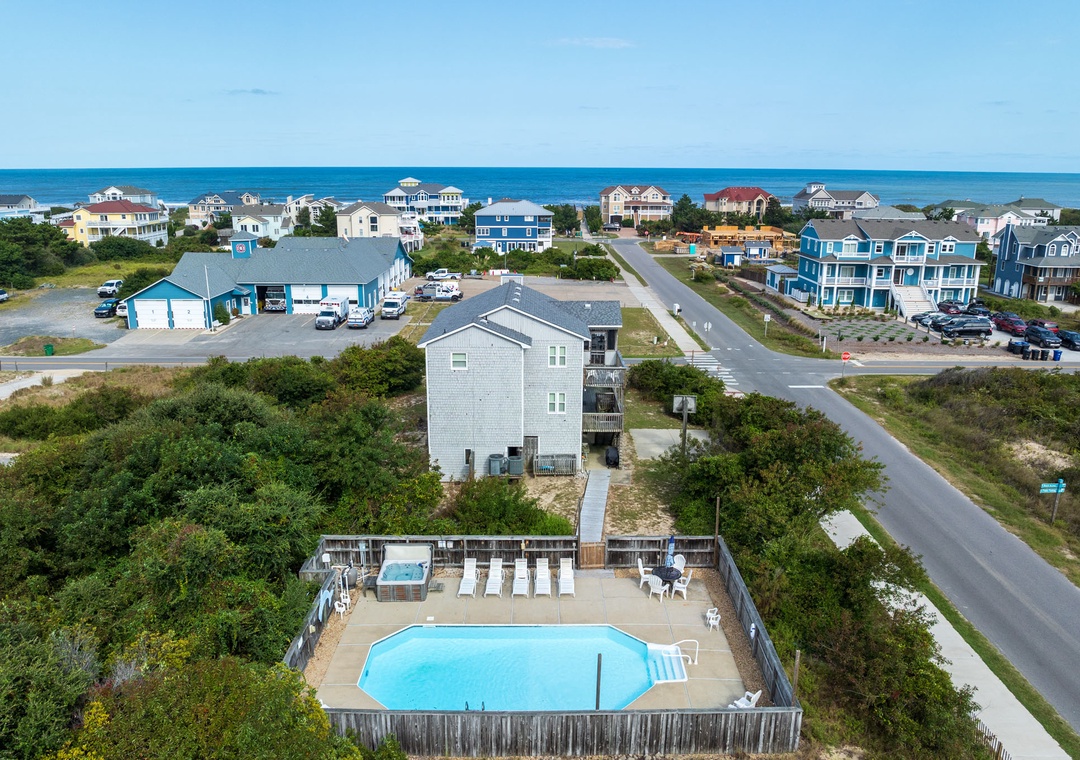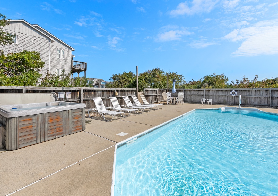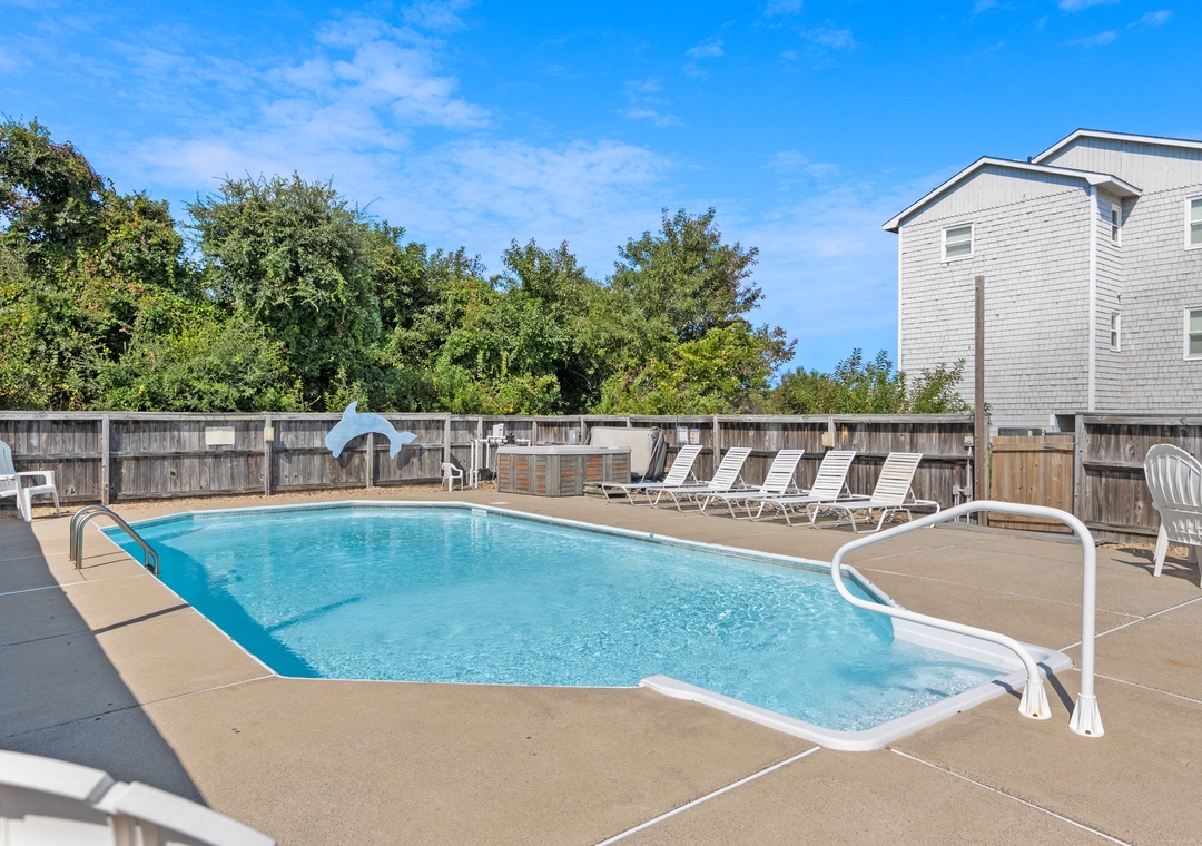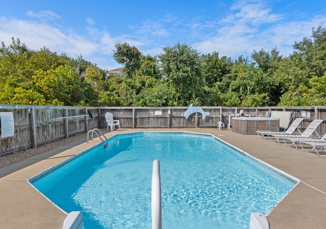 Amenities include a 12' x 26' private saltwater pool, hot tub, screened porch, TVs, DVD players, decks, gas grill, enclosed outside shower, hammock & porch swing, basketball court. Approx. 600' to the beach with ocean views & direct beach access. The Whaler offers wireless internet access and free domestic long distance service.