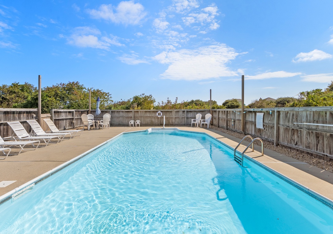 The Whaler features a saltwater/saline pool. The water in a saltwater pool feels softer and does not dry out your skin or burn you eyes like chlorine pools sometimes can. Saltwater pools use a chemical process to turn the salt into chlorine and keep the chemical levels continually balanced.