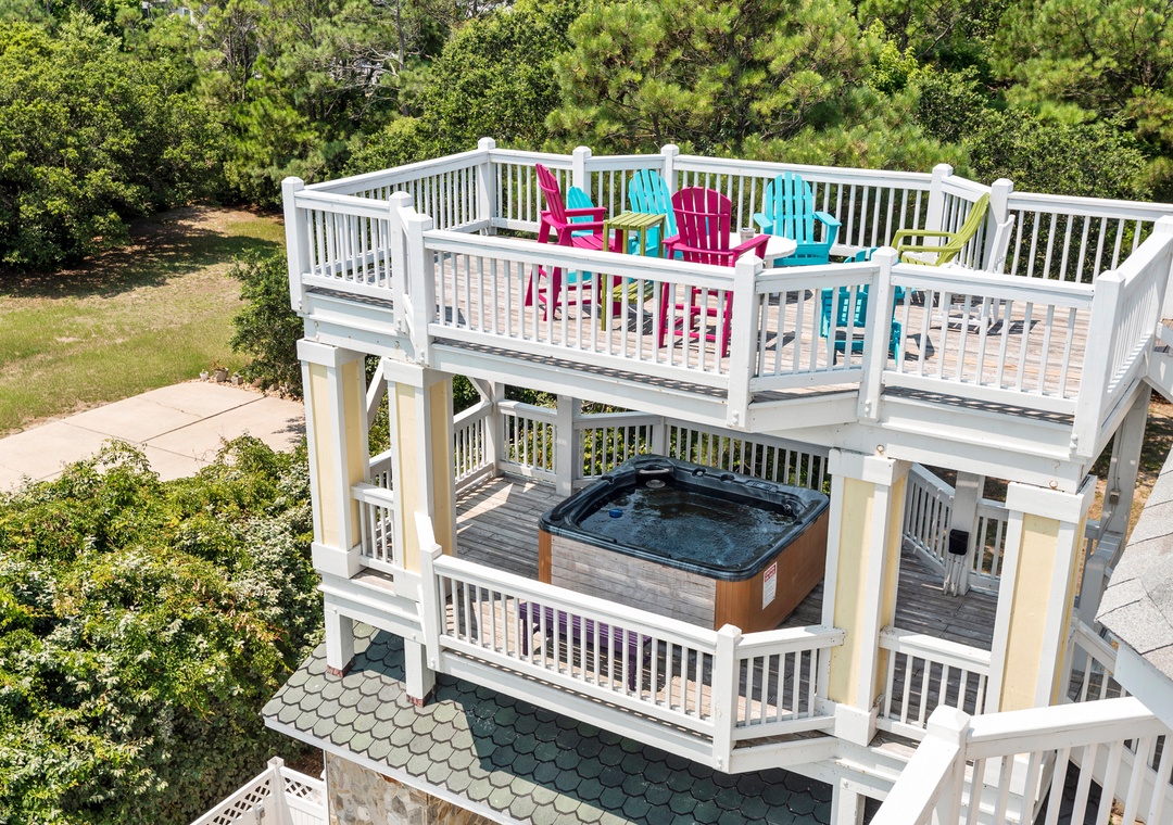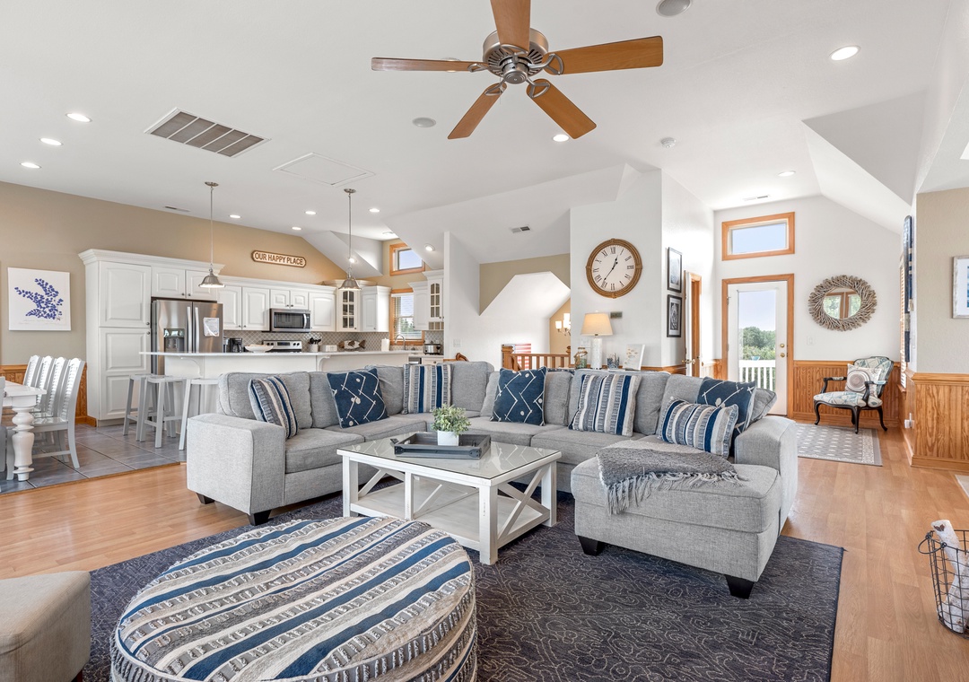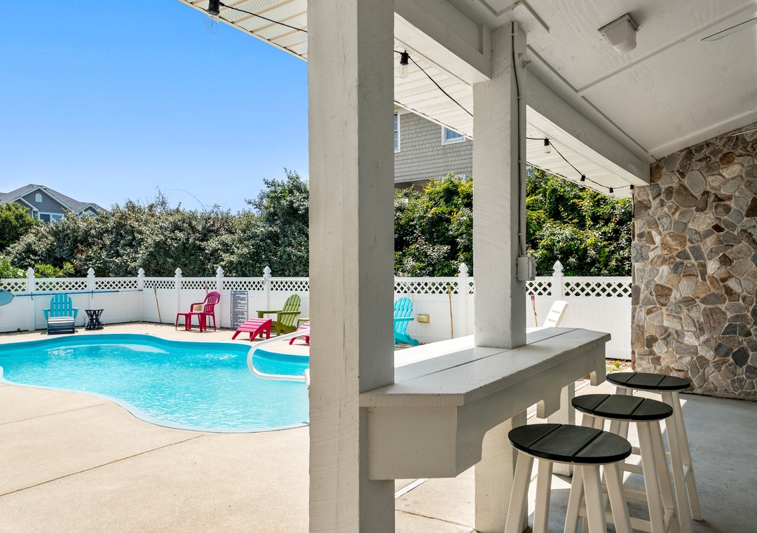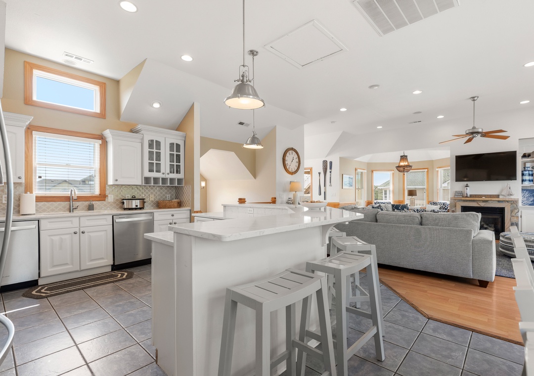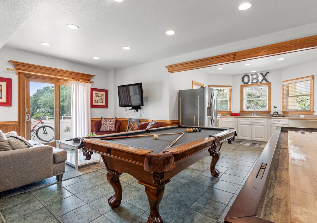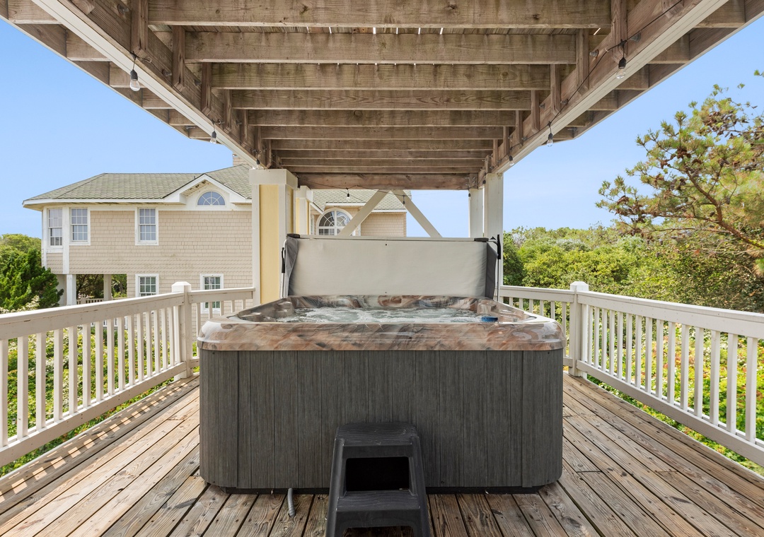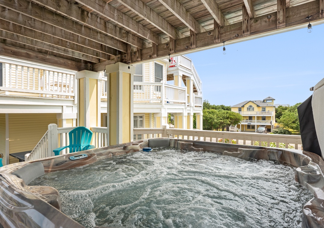 Outdoor amenities abound at Tides That bind with a private pool, hot tub, and a tiki bar and cabana, perfect for keeping the party going all day long. Enjoy the rooftop deck and the covered decking overlooking the pool area, perfect for dining al fresco and relaxing in the shade.