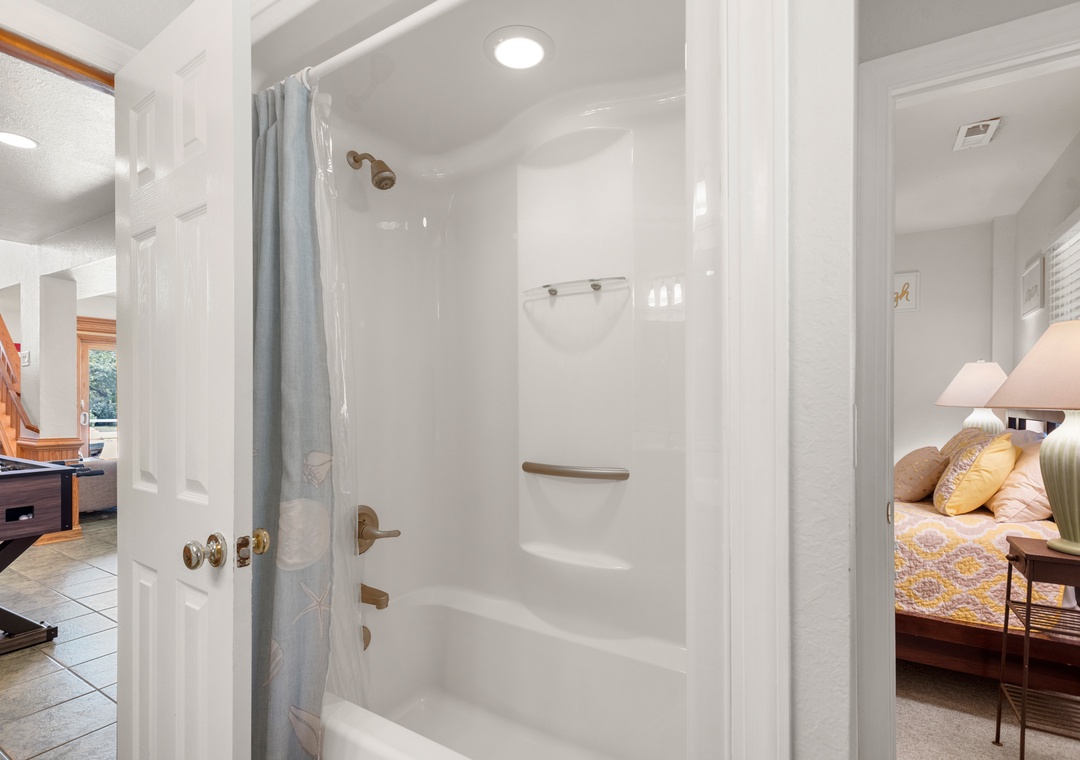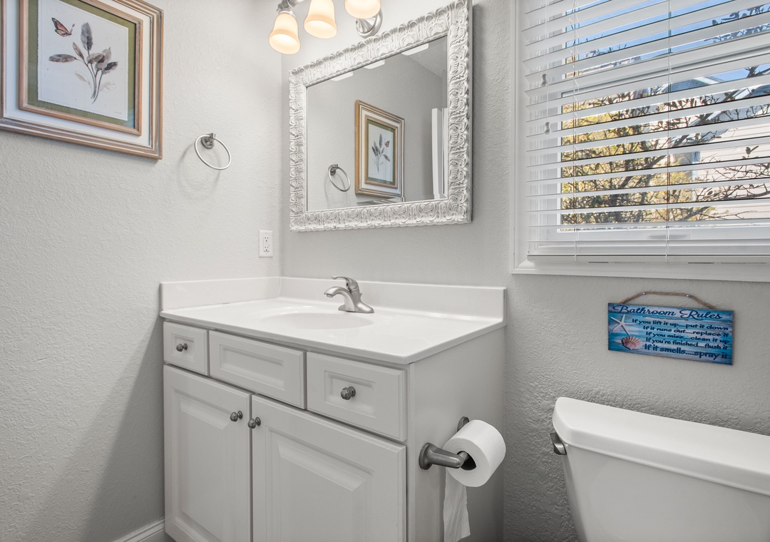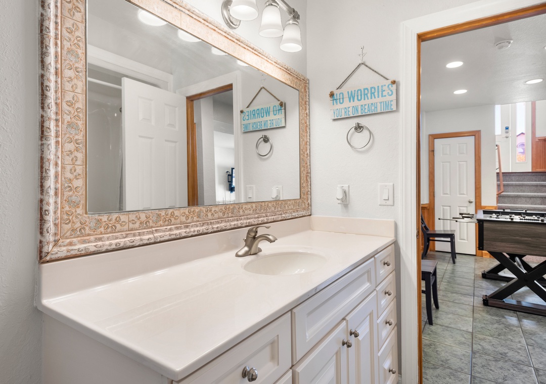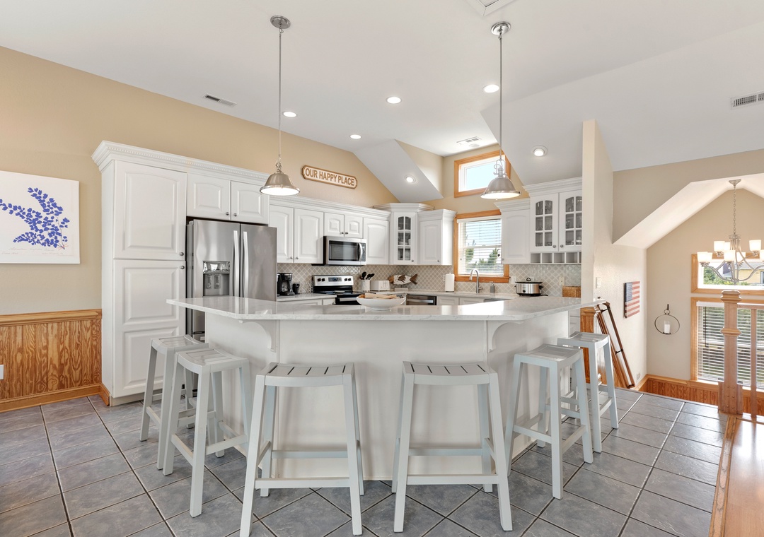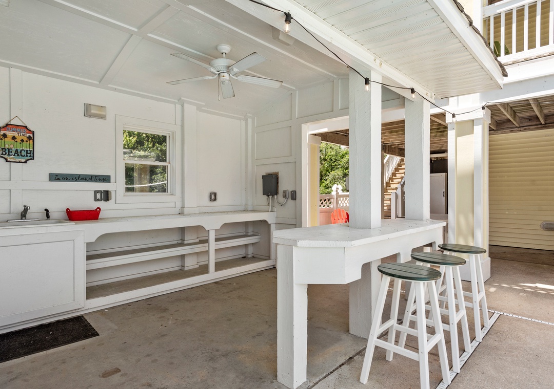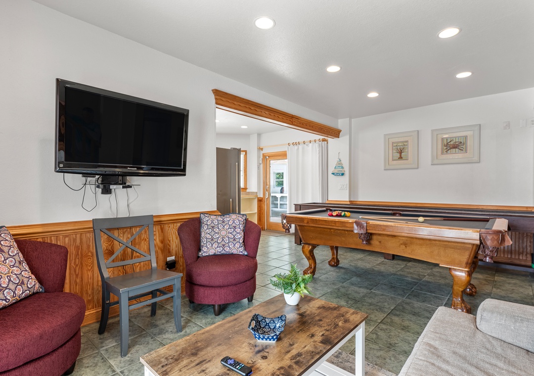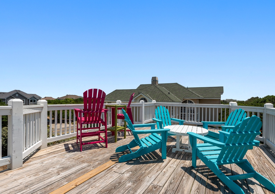 Outdoor amenities abound at Tides That bind with a private pool, hot tub, and a tiki bar and cabana, perfect for keeping the party going all day long. Enjoy the rooftop deck and the covered decking overlooking the pool area, perfect for dining al fresco and relaxing in the shade.