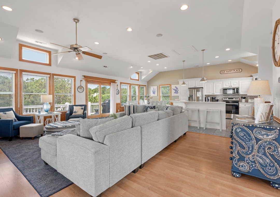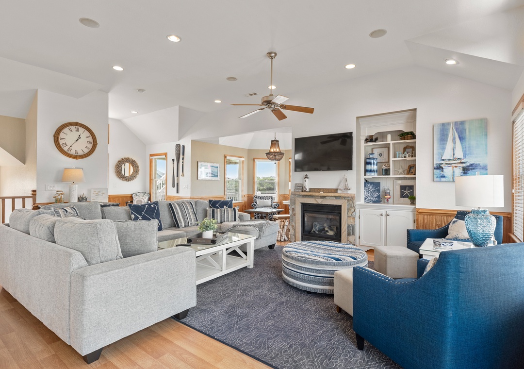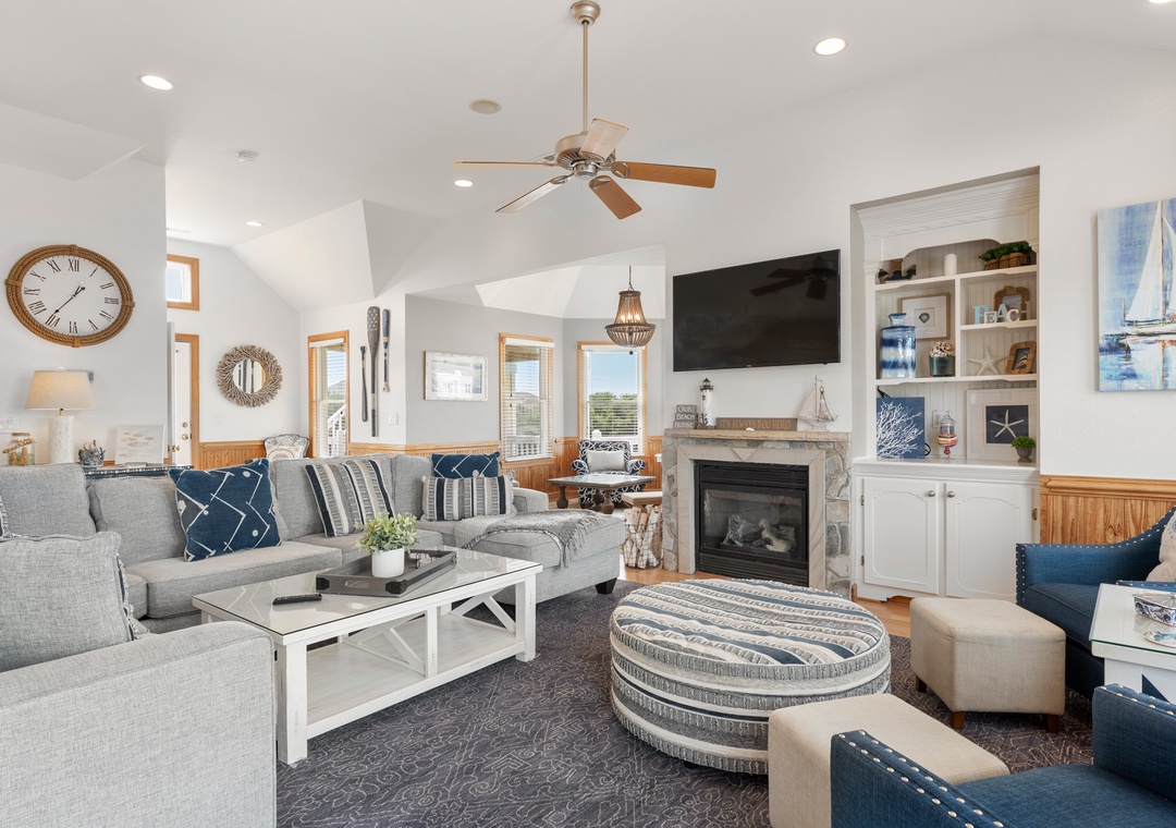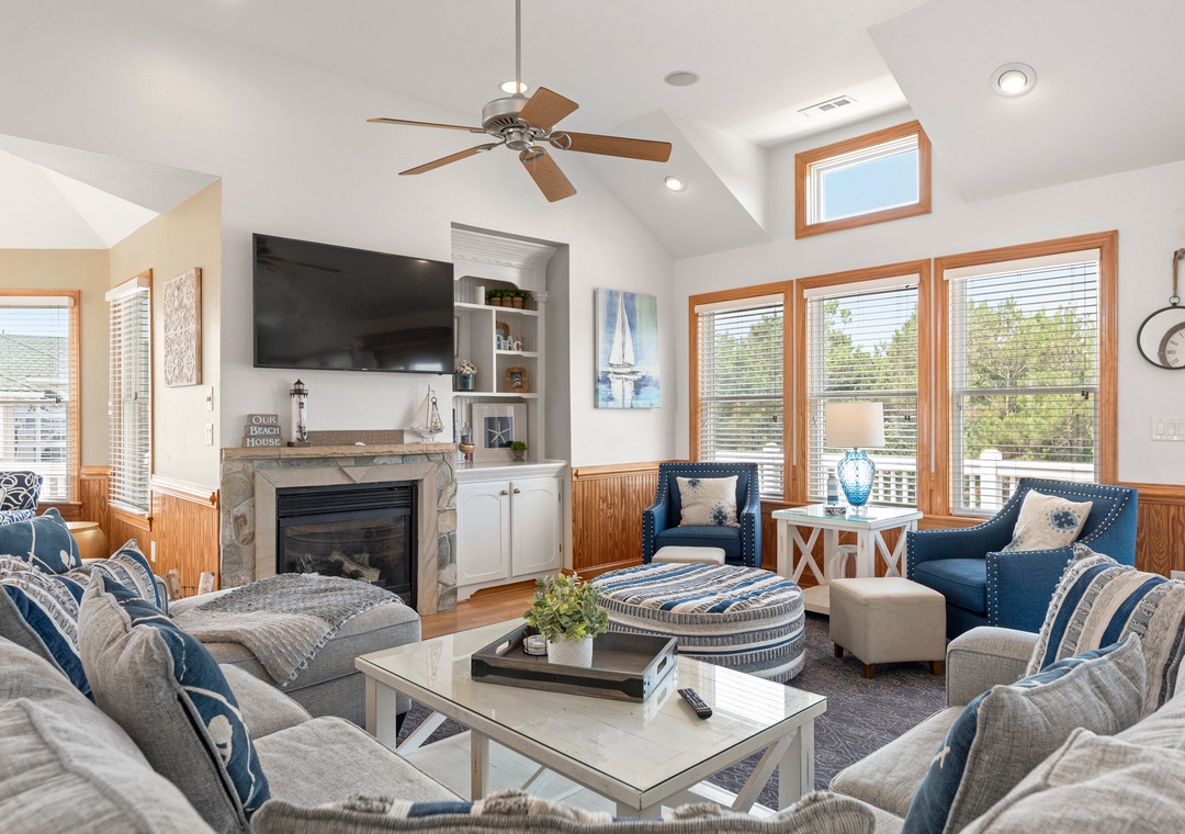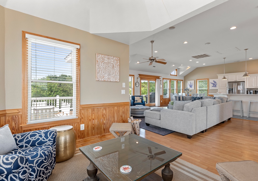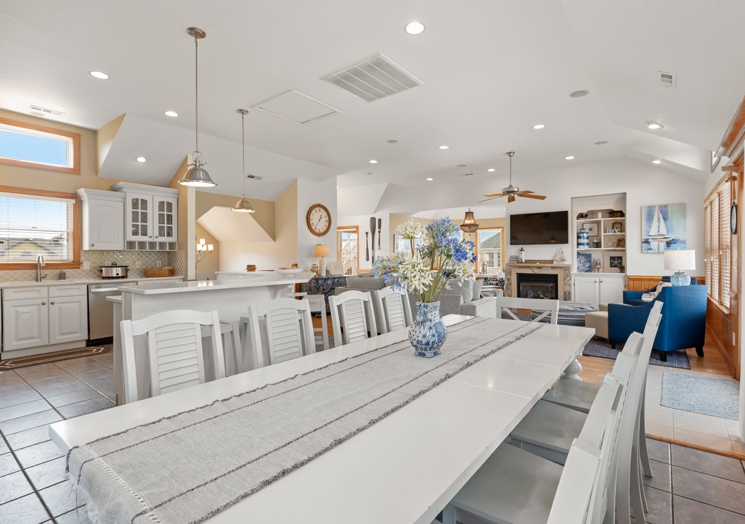 New To Village Realty, with 1st availability May 16, 2026. Make the most of your Outer Banks vacation by reserving Tides That Bind, this home features three spacious levels, thoughtfully designed for both comfort and entertainment. The top floor offers an open concept with cathedral ceilings and a great room with living, dining, and kitchen areas where everyone can gather for some great food, dining, and movies. The rec room on the ground floor offers more entertainment and fun with a pool, foosball, and shuffleboard tables. You're not going to want to leave!