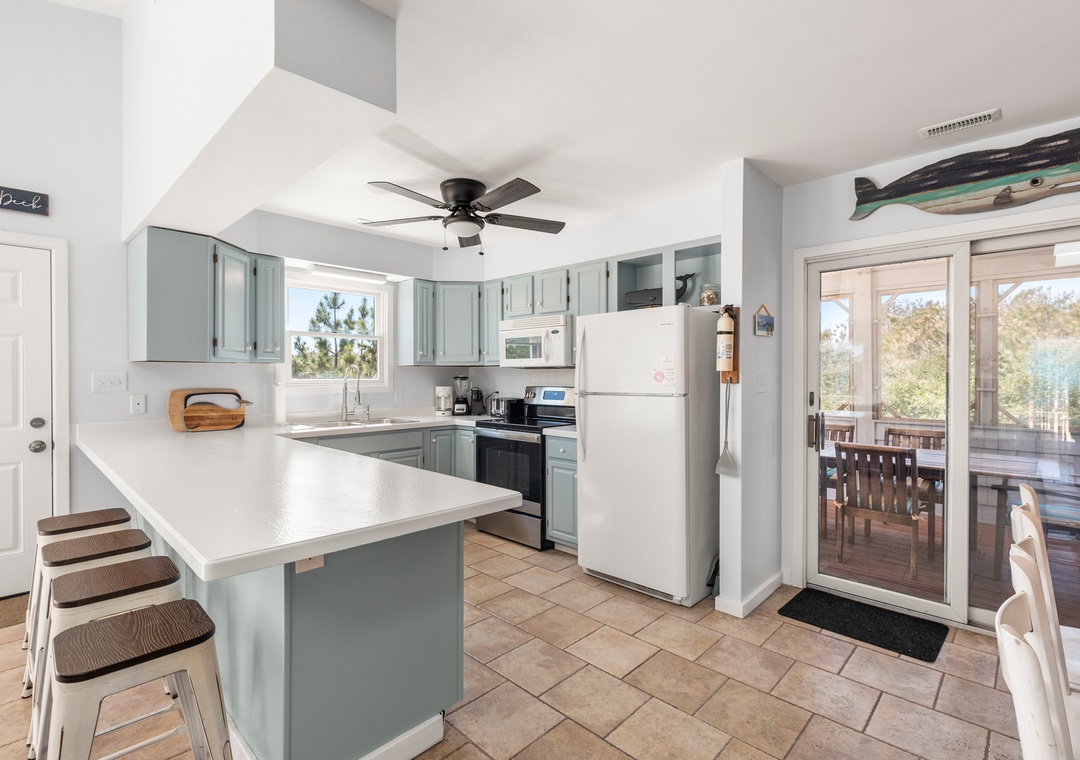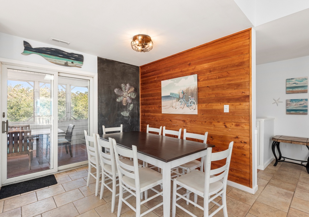 Centrally located in Corolla, Wishing Whale is just a mile north of Monteray Plaza for conveniences such as grocery stores, specialty food markets, gas stations and a coffee shop, plus beach gear stores and rentals. Nearby dining and takeout services include Sun Fish Grill, Sundogs and Sooey's BBQ. For the ultimate retail therapy session, head over to Timbuck II Shopping Village where you'll find favorites such as The Cotton Gin, The Cottage Shop and Gray's. The village also features some of Corolla's most popular restaurants including Mike Dianna's Grill Room and La Dolce Vita. After dinner, head over to Big Buck's for ice cream, followed by a round of mini golf and go carts.
