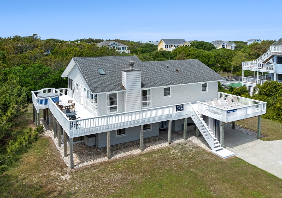 Make your family's vacation dreams come true at Wishing Whale, a well-maintained and dog-friendly oceanside home in Corolla's Whalehead community. Great for families or small gatherings, and ideal for the holidays. Getting to the beach is a breeze and only a five-minute walk from the house, in either direction via the Sailfish Street or Coral Street boardwalks, with no roads to cross. Back at the house, the outdoor fun continues with an expansive grassy lawn perfect for playing yard games or just letting the kids and dogs run around. Inside, the open-concept great room features vaulted ceilings with skylights for abundant natural light. This fabulous gathering space provides plenty of comfortable seating where the entire family can kick back and relax. When you're not dining out at one of Corolla's fabulous restaurants, prepare meals at home in the fully stocked kitchen. After dinner, enjoy drinks and good conversation on the sun deck, or unwind with a soak in the bubbly hot tub.