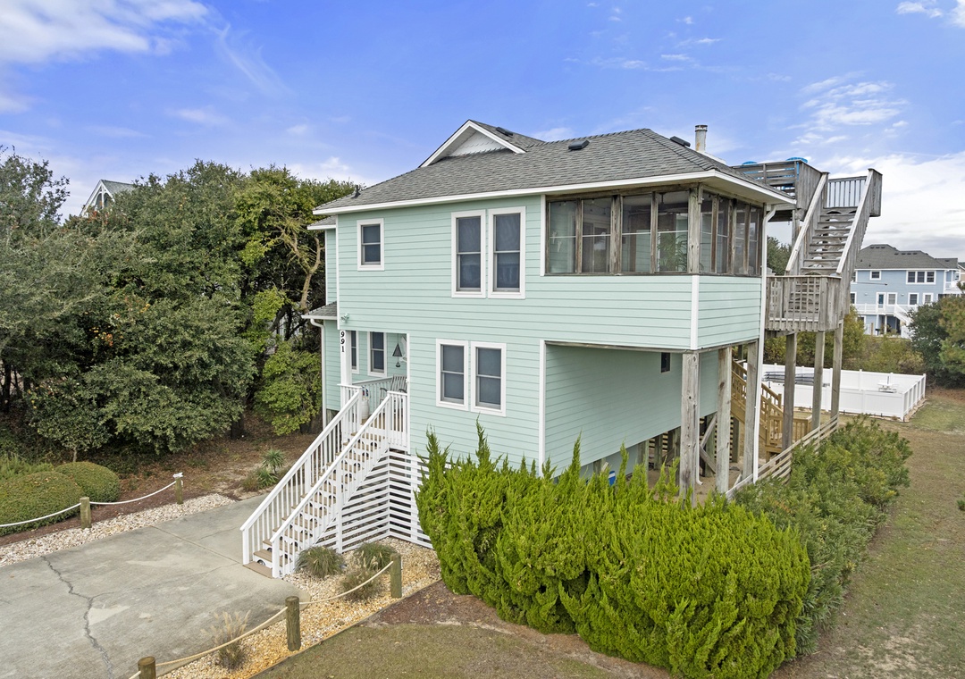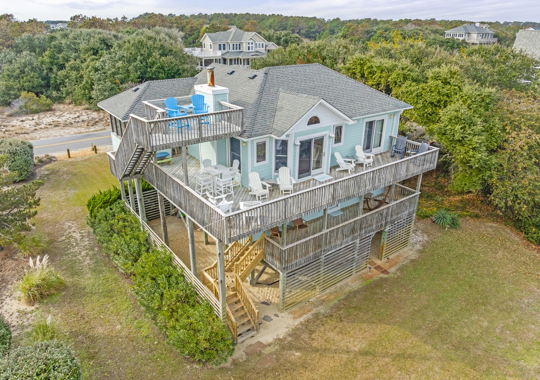 The outdoor area is a true highlight of 'Stella Marina'. Here, you can take a refreshing dip in the private pool, relax in the hot tub, or simply enjoy the beautiful surroundings from the comfort of the deck. ‘Stella Marina’ has a large yard ready for you to enjoy all of your favorite outdoor beach activities and a gas grill ready for you to sear that steak you have been dreaming of! With ample parking, a screened-in-porch, a hammock and a lovely crows nest with breath taking ocean views, ‘Stella Marina’ has it all!