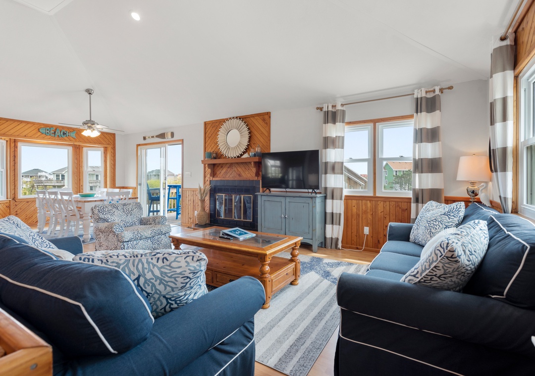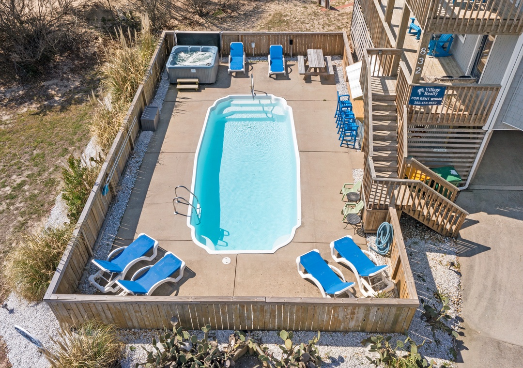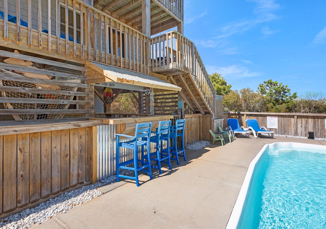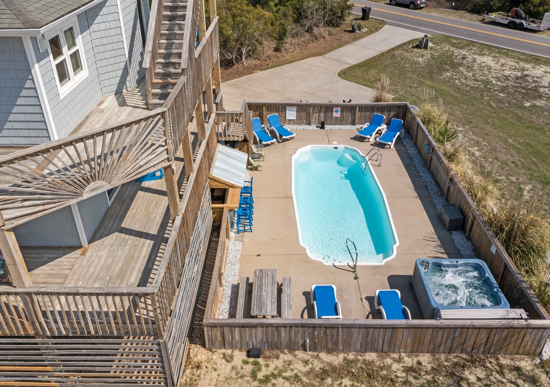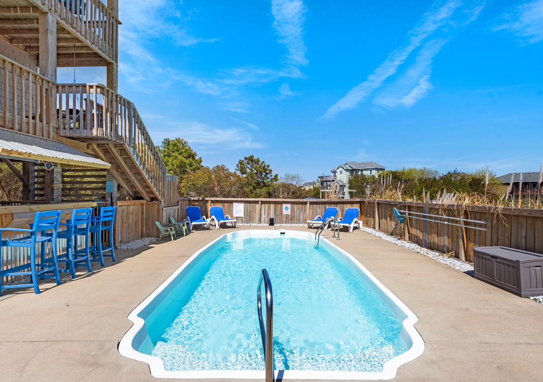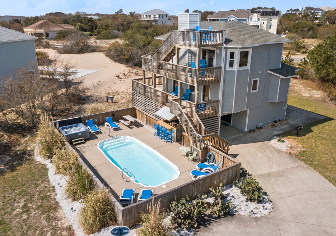 Sea Blue is a comfortable 4 bedroom home located in Whalehead Beach that offers everything you need for a laid back Corolla vacation. Your family will love the convenience of having their own private pool. Relax on the deck while enjoying the ocean breezes, or soak in the hot tub after a long day at the beach. Perfect for families who need some additional space, the ground level features a rec room that can be used flexibly as a second living area or for sleeping. This oceanside community offers multiple beach accesses with parking and no major roads to cross.