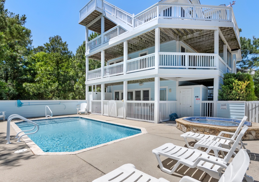 Dancing Days where you can spend some relaxing time in your own private pool and hot tub or take a short walk to the beautiful beach. Plenty of room for family and friends to make those awesome OBX memories, basking in the sun, relaxing and reading a book on the many decks or playing a game of pool. Close to many family-friendly activities, great restaurants and shopping