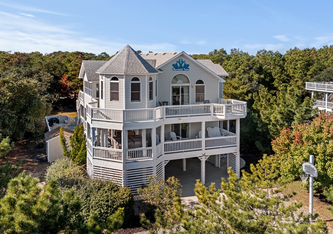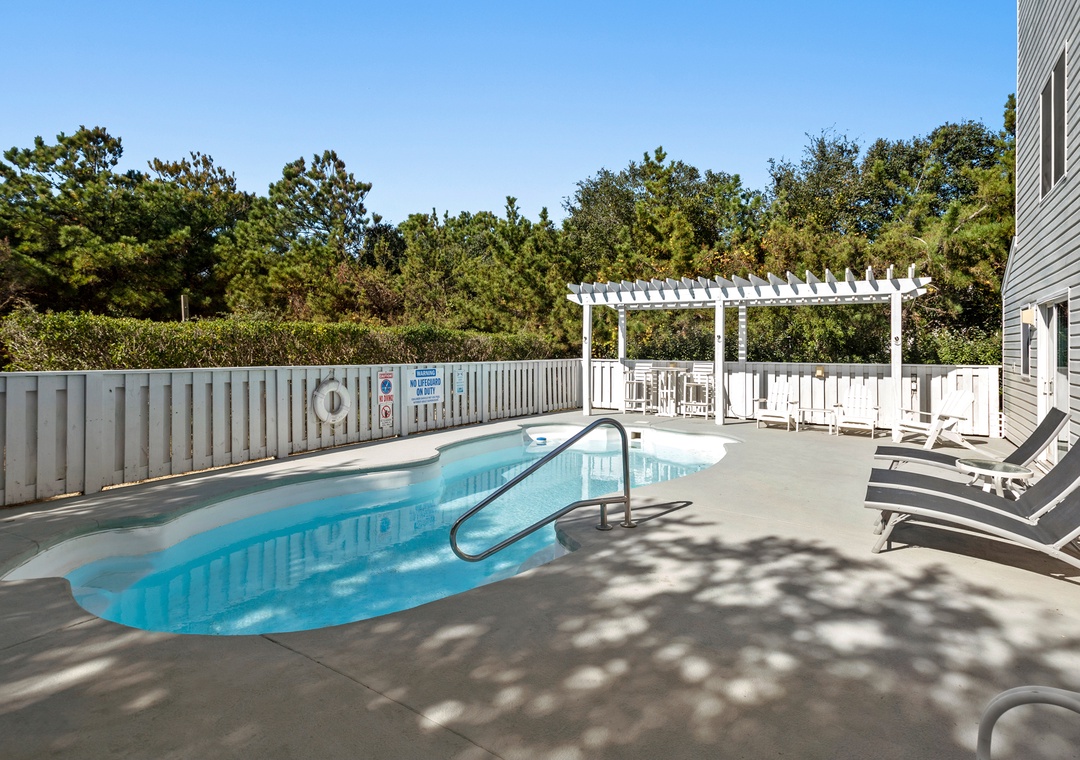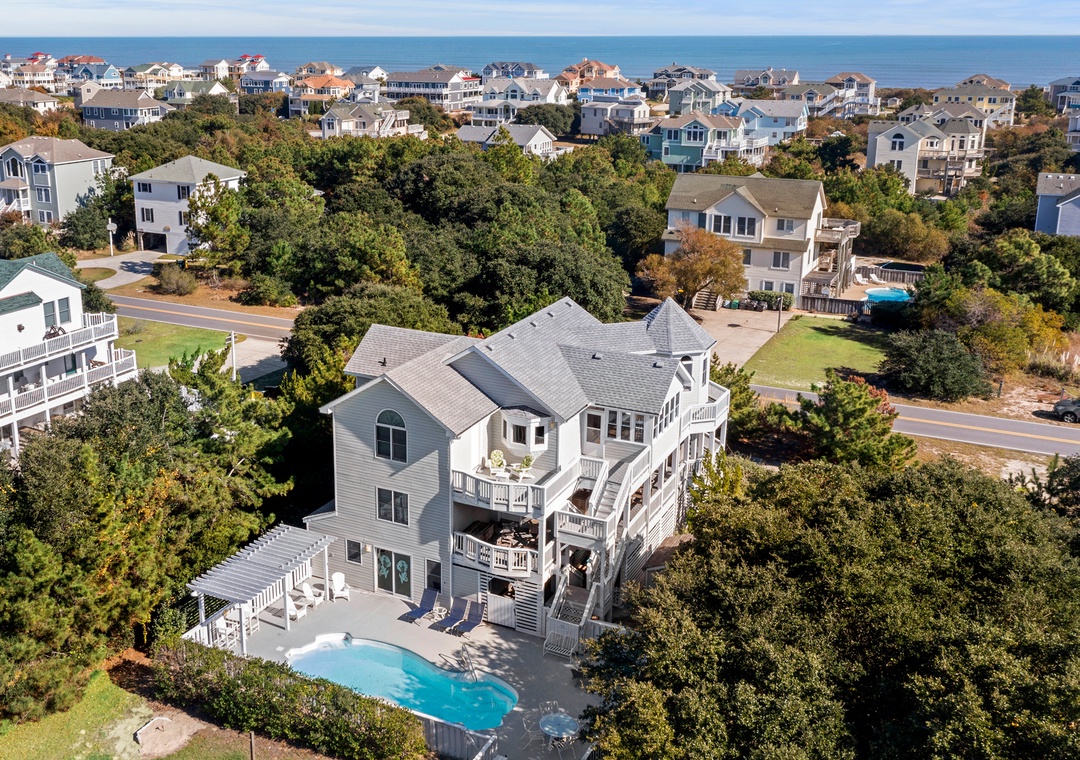 Spend your next vacation hanging out and hanging ten at Toes On The Nose, a spacious oceanside home in the Whalehead Beach community of Corolla. Comfortably furnished with plenty of character, the living area's open-concept layout is accentuated by vaulted ceilings and wooden beams. The chef's kitchen features Silestone countertops, travertine floors, a large island with bar seating, and plenty of room to prepare dinner while still being a part of the action. Toes On The Nose is ideal for large or multiple families, with two master bedrooms and a game room on the ground level for additional living space. Complete with sitting area, TV, foosball table and refrigerator, the game room provides convenient access to and from the private pool. There's no shortage of outdoor living space either, with a screened-in porch, wraparound decks on two levels plus an expansive pool area. The nearby beach access at Sailfish Street is just a short walk away and also provides public parking. In the evenings, relax by the pool or soak in the hot tub while planning the next day's adventures.