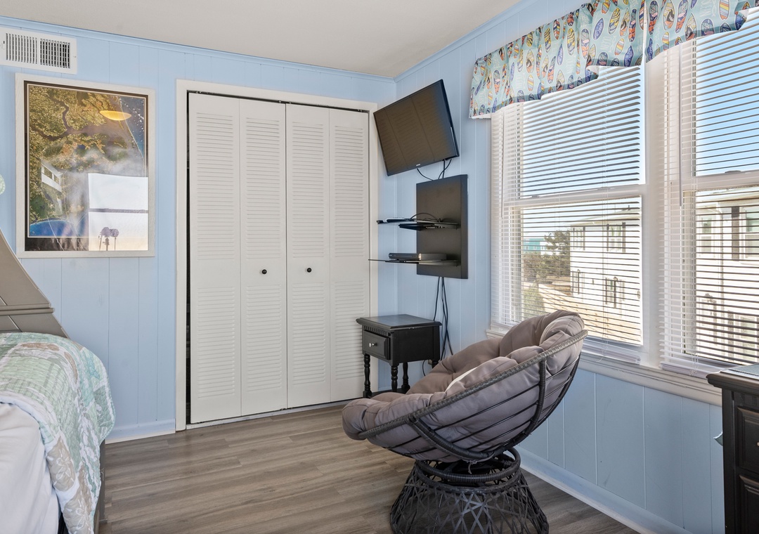 The building exterior is in need of attention ( pealing paint, rickety wooden stairs), but the interior of this unit was in fine condition and looked to be recently painted and decorated. The kitchen has everything you would need including a Keurig coffee machine. Short boardwalk over the dunes to the beach. View of the water from upstairs bedroom. Pool is close by. Restaurants and grocery are a short drive away.- Reviewed On: 6/9/2022